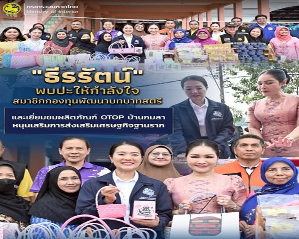 เมื่อวานนี้ (27 มิ.ย. 68) เวลา 18.00 น. นางสาวธีรรัตน์ สำเร็จวาณิชย์ รัฐมนตรีช่วยว่าการกระทรวงมหาดไทย รักษาราชการแทนรัฐมนตรีว่าการกระทรวงมหาดไทย ลงพื้นที่พบปะให้กำลังใจและเยี่ยมชมผลิตภัณฑ์ OTOP กลุ่มวิสาหกิจชุมชนบ้านกมลา และสมาชิกกองทุนพัฒนาบทบาทสตรี โดยมี นายโสภณ สุวรรณรัตน์ ผู้ว่าราชการจังหวัดภูเก็ต พร้อมด้วยนายธรรมรงค์ ช่วยอักษร ปลัดอำเภอ รักษาราชการแทนนายอำเภอกะทู้ น.ส.เรวดี ชูทอง พัฒนาการอำเภอกะทู้ นายสันทัด คุ้มมิตร รองนายก อบต.กมลา กำนัน ผู้ใหญ่บ้าน และสมาชิกกลุ่มฯ ร่วมให้การต้อนรับ ณ องค์การบริหารส่วนตำบลกมลา อ.กะทู้ จ.ภูเก็ต