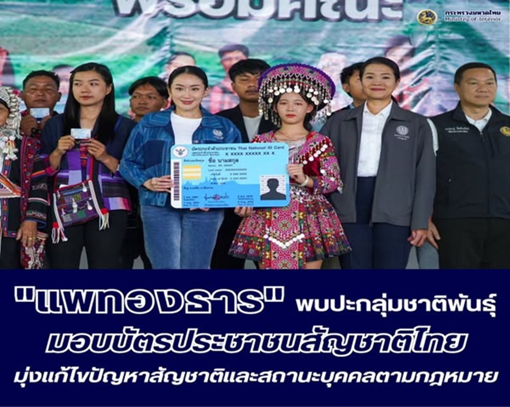 น.ส.แพทองธาร กล่าวว่า ตามที่คณะรัฐมนตรีได้อนุมัติหลักเกณฑ์เพื่อเร่งรัดการแก้ไขปัญหาสัญชาติและสถานะบุคคลให้แก่บุคคลที่อพยพเข้ามาอยู่ในราชอาณาจักรเป็นเวลานาน และกลุ่มบุตรที่เกิดในราชอาณาจักร เมื่อวันที่ 29 ต.ค. 67 เพราะการไม่มีบัตรประจำตัวประชาชนทำให้ใช้ชีวิตด้วยความยากลำบาก เข้าถึงสวัสดิการรัฐไม่ได้ รัฐบาลจึงมอบหมายหน่วยงานที่เกี่ยวข้องเร่งดำเนินการย่นระยะเวลาการพิจารณากลุ่มเป้าหมายเหลือเพียง 5 วัน จากอดีตต้องรอกันนานมาก ๆ และในวันนี้ พี่น้องกลุ่มชาติพันธุ์ที่ได้รับสัญชาติก็สามารถเข้าถึงสวัสดิการของรัฐได้อย่างทั่วถึง เดินทางไปไหนมาไหนก็รู้สึกปลอดภัย ต่อไปนี้ทุกคนจะเป็นคนไทยอย่างเสมอภาค สมศักดิ์ศรี สามารถใช้ชีวิตได้อย่างภาคภูมิ