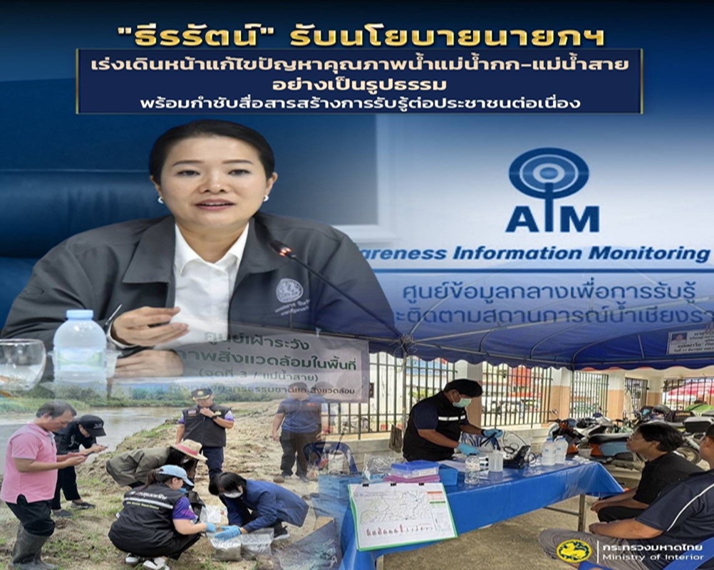 “รัฐบาลให้ความสำคัญสูงสุดต่อความปลอดภัยในการใช้น้ำของประชาชนในทุกมิติ ทั้งน้ำเพื่อการอุปโภค บริโภค เกษตรกรรม ควบคู่การอนุรักษ์สิ่งแวดล้อม พร้อมกำชับให้หน่วยงานที่เกี่ยวข้องดำเนินการตรวจสอบคุณภาพน้ำอย่างเข้มงวด ไม่ว่าจะเป็นน้ำประปา สัตว์น้ำ พืชผลทางการเกษตร รวมถึงสุขภาพของประชาชน ซึ่งได้มีการเก็บตัวอย่าง ตรวจวิเคราะห์ และรายงานผลอย่างต่อเนื่อง เพื่อให้ประชาชนสามารถใช้น้ำได้อย่างมั่นใจและปลอดภัย นอกจากนี้ ยังได้สั่งการให้จังหวัดเชียงรายและจังหวัดเชียงใหม่ เร่งสำรวจผลกระทบทั้งทางตรงและทางอ้อมที่ประชาชนได้รับจากปัญหาคุณภาพน้ำ รวมถึงให้จัดเวทีสาธารณะในระดับชุมชน เพื่อเปิดพื้นที่ให้ประชาชนได้แสดงความคิดเห็น เสนอแนะแนวทางการแก้ไข และร่วมกำหนดอนาคตของการพัฒนาในพื้นที่อย่างยั่งยืน พร้อมมอบหมายให้กระทรวงทรัพยากรและสิ่งแวดล้อมจัดตั้งศูนย์เฝ้าระวังสิ่งแวดล้อมในพื้นที่ ชี้แจงสถานการณ์คุณภาพน้ำ และตอบข้อกังวลของประชาชน ทั้งทางเฟซบุ๊ก “ศูนย์ข้อมูลกลางเพื่อการรับรู้และติดตามสถานการณ์น้ำเชียงราย (AIM)” และทุกช่องทางสื่อสาร อาทิ หอกระจายข่าว เสียงตามสาย วิทยุชุมชน โดยประเด็นที่เป็นถูกสอบถามมากที่สุดคือผลกระทบต่อสุขภาพของประชาชน และต่อพืชผลทางการเกษตรด้วย” น.ส.ธีรรัตน์ กล่าว