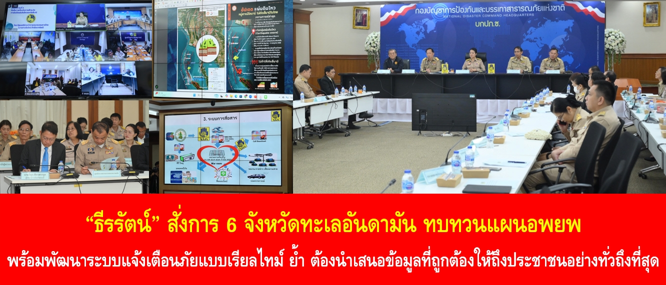 วันนี้ (7 ก.ค. 68) เวลา 09.30 น. น.ส.ธีรรัตน์ สำเร็จวาณิชย์ รัฐมนตรีช่วยว่าการกระทรวงมหาดไทย เป็นประธานการประชุมและแถลงข่าวซักซ้อมความเข้าใจเกี่ยวกับเหตุแผ่นดินไหวและสึนามิระหว่างหน่วยงานและการสร้างการรับรู้ให้กับประชาชน โดยมี นายภาสกร บุญญลักษม์ อธิบดีกรมป้องกันและบรรเทาสาธารณภัย นายนัฐวุฒิ แดนดี รองอธิบดีกรมอุตุนิยมวิทยาฝ่ายวิชาการ และโฆษกกรมอุตุนิยมวิทยา นายสุเมธ สายทอง รองอธิบดีกรมทรัพยากรธรณี รศ.ดร.เสรี ศุภราทิตย์ ผู้เชี่ยวชาญพิเศษด้านการจัดการสาธารณภัยศูนย์เตือนภัยพิบัติแห่งชาติ พร้อมด้วยคณะผู้บริหารกรมป้องกันและบรรเทาสาธารณภัย ผู้ว่าราชการจังหวัด 6 จังหวัดในกลุ่มจังหวัดภาคใต้ฝั่งอันดามัน และหน่วยงานที่เกี่ยวข้อง ณ ห้องประชุม 1 ปภ. อาคาร 3 ชั้น 5 กรมป้องกันและบรรเทาสาธารณภัย และประชุมผ่านสื่ออิเล็กทรอนิกส์