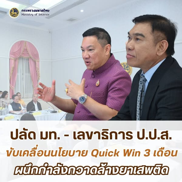 เมื่อวันที่ 15 ก.ค. 68 นายอรรษิษฐ์ สัมพันธรัตน์ ปลัดกระทรวงมหาดไทย ร่วมกับ พล.ต.ท.ภาณุรัตน์ หลักบุญ เลขาธิการคณะกรรมการป้องกันและปราบปรามยาเสพติด (ป.ป.ส.) ประชุมหารือการป้องกัน ปราบปราม และแก้ไขปัญหายาเสพติด และการเปิดปฏิบัติการกวาดล้างยาเสพติด “No Drug No Dealer” ผนึกกำลังชุมชนปลอดยาเสพติด ณ ห้องประชุม War room ชั้น 2 กระทรวงมหาดไทย