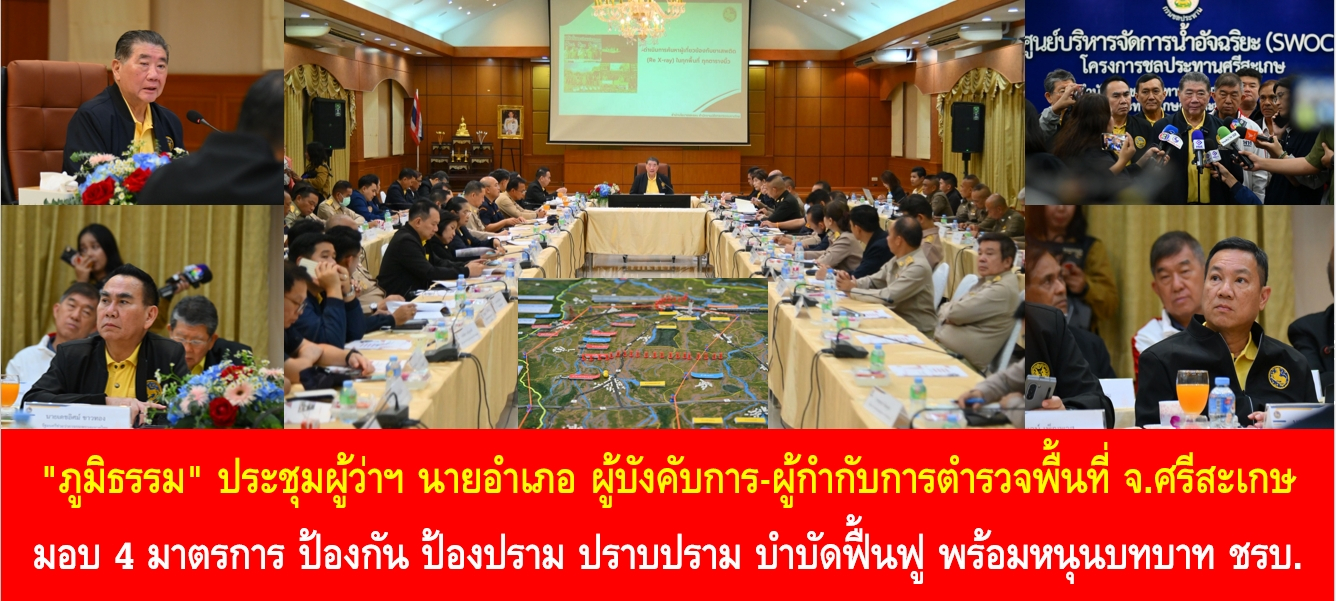 โอกาสนี้ นายภูมิธรรม รับฟังบรรยายสรุปการบริหารจัดการน้ำในพื้นที่จังหวัดศรีสะเกษ จากนายจำรัส สวนจันทร์ ผู้อำนวยการโครงการชลประทานศรีสะเกษ โดยสถานการณ์น้ำจังหวัดศรีสะเกษในปัจจุบัน เขื่อนขนาดใหญ่ 2 แห่ง คือ 1 เขื่อนราษีไศล มีปริมาณน้ำ 49.44 ล้านลูกบาศก์เมตร คิดเป็นร้อยละ 66.40 และเขื่อนหัวนา มีปริมาณน้ำ 43.72 ล้านลูกบาศก์เมตร คิดเป็นร้อยละ 67.30 และอ่างเก็บน้ำขนาดกลาง 16 แห่ง มีปริมาณน้ำ 120.09 ล้านลูกบาศก์เมตร คิดเป็นร้อยละ 57.56