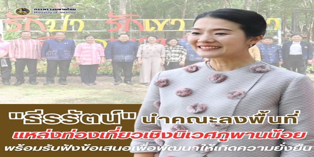 เมื่อวันที่ 19 ก.ค. 68 เวลา 15.10 น. นางสาวธีรรัตน์ สำเร็จวาณิชย์ รัฐมนตรีช่วยว่าการกระทรวงมหาดไทย เป็นประธานตรวจราชการติดตามการส่งเสริมสนับสนุนและพัฒนาศักยภาพด้านการท่องเที่ยวของจังหวัดหนองบัวลำภู พร้อมทั้งรับฟังการสะท้อนปัญหาความต้องการแนวทางการพัฒนาแหล่งท่องเที่ยว ตามนโยบายรัฐบาลและกระทรวงมหาดไทย ณ แหล่งท่องเที่ยวเชิงนิเวศภูพานน้อย ต.หนองบัว อ.เมืองหนองบัวลำภู จ.หนองบัวลำภู โดยมี นายสุรศักดิ์ อักษรกุล ผู้ว่าราชการจังหวัดหนองบัวลำภู นายศศิน พัฒนภิรมย์ นางสาวอรอาภา โล่ห์วีระ รองผู้ว่าราชการจังหวัดหนองบัวลำภู นายกำธร วิเชฏฐพงศ์ ปลัดจังหวัดหนองบัวลำภู นายเตชิต ทรงบุญศาสตร์ นายอำเภอเมืองหนองบัวลำภู นายไชยา พรหมา นายณพล เชยคำแหง นายสยาม หัตถสงเคราะห์ สมาชิกสภาผู้แทนราษฎรจังหวัดหนองบัวลำภู นางเทียบจุฑา ขาวขำ สมาชิกสภาผู้แทนราษฎรจังหวัดอุดรธานี นางศรัณยา สุวรรณพรหม นายกองค์การบริหารส่วนจังหวัด (อบจ.) หนองบัวลำภู พร้อมคณะผู้บริหาร สมาชิกสภา ข้าราชการ และเจ้าหน้าที่ อบจ.หนองบัวลำภู เข้าร่วม