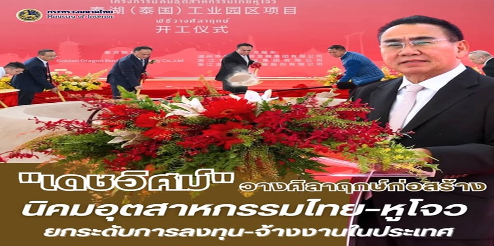 เมื่อวานนี้ (19 ก.ค. 68) เวลา 14.08 น. นายเดชอิศม์ ขาวทอง รัฐมนตรีช่วยว่าการกระทรวงมหาดไทย เป็นประธานพิธีเปิดและวางศิลาฤกษ์ก่อสร้างนิคมอุตสาหกรรมไทย–หูโจว โดยมี นายธวัชชัย ศรีทอง ผู้ว่าราชการจังหวัดชลบุรี นางสาวอรุณรัตน์ พุ่มเจริญ นายอำเภอพนัสนิคม พ.ต.อ.ธรรมรัฐ อัครไชยพงศ์ ผู้กำกับการ สภ.พนัสนิคม นายหวัง จงหมิง รองนายกเทศมนตรีเมืองหูโจว (ฝ่ายบริหาร) และ นางสาวจาง ซื่อยี่ กรรมการผู้จัดการใหญ่ กลุ่มหูโจว ร่วมงาน พร้อมด้วยหัวหน้าส่วนราชการ ผู้บริหารท้องถิ่น และแขกผู้มีเกียรติ ร่วมพิธี ณ พื้นที่โครงการนิคมอุตสาหกรรมไทย–หูโจว ต.นาวังหิน อ.พนัสนิคม จ.ชลบุรี