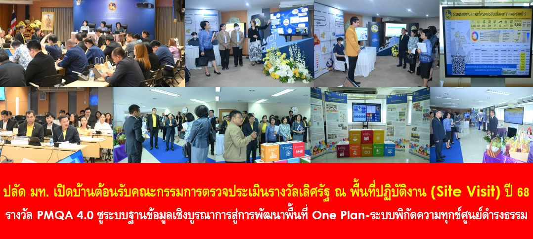 สำหรับการตรวจประเมินรางวัลเลิศรัฐ ณ พื้นที่ปฏิบัติงาน (Site Visit) ประจำปี 2568 ประเภทรางวัลคุณภาพการบริหารจัดการภาครัฐ 4.0 (PMQA 4.0) ในปีนี้ มีหน่วยงานในสังกัด มท. ที่ผ่านเข้ารอบ รวมทั้งสิ้น 56 ผลงาน มีหน่วยงานระดับกรม จำนวน 4 หน่วยงาน ได้แก่ กรมการพัฒนาชุมชน กรมการปกครอง กรมที่ดิน และสำนักงานปลัดกระทรวงมหาดไทย และหน่วยงานระดับจังหวัด จำนวน 12 จังหวัด ได้แก่ ขอนแก่น ตรัง ตราด ตาก นครราชสีมา นครศรีธรรมราช นนทบุรี ศรีสะเกษ สงขลา สระบุรี สุพรรณบุรี และสุรินทร์