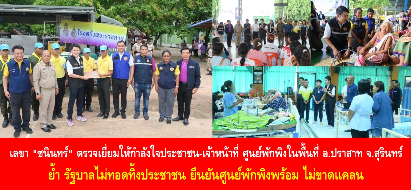 เมื่อวันที่ 26 ก.ค. 68 เวลา 13.30 น. นายชนินทร์ รุ่งธนเกียรติ เลขานุการรัฐมนตรีว่าการกระทรวงมหาดไทย เป็นผู้แทนนายภูมิธรรม เวชยชัย รองนายกรัฐมนตรีและรัฐมนตรีว่าการกระทรวงมหาดไทย ลงพื้นที่เยี่ยมเยียนให้กำลังใจประชาชนในศูนย์พักพิงผู้อพยพจากเหตุการณ์ความรุนแรงชายแดนไทย-กัมพูชา ในพื้นที่ อ.ปราสาท จ.สุรินทร์ โดยมี นายอดิเทพ กมลเวชช์ ผู้ตรวจราชการกระทรวงมหาดไทย เป็นผู้แทนปลัดกระทรวงมหาดไทย ร่วมลงพื้นที่ด้วย