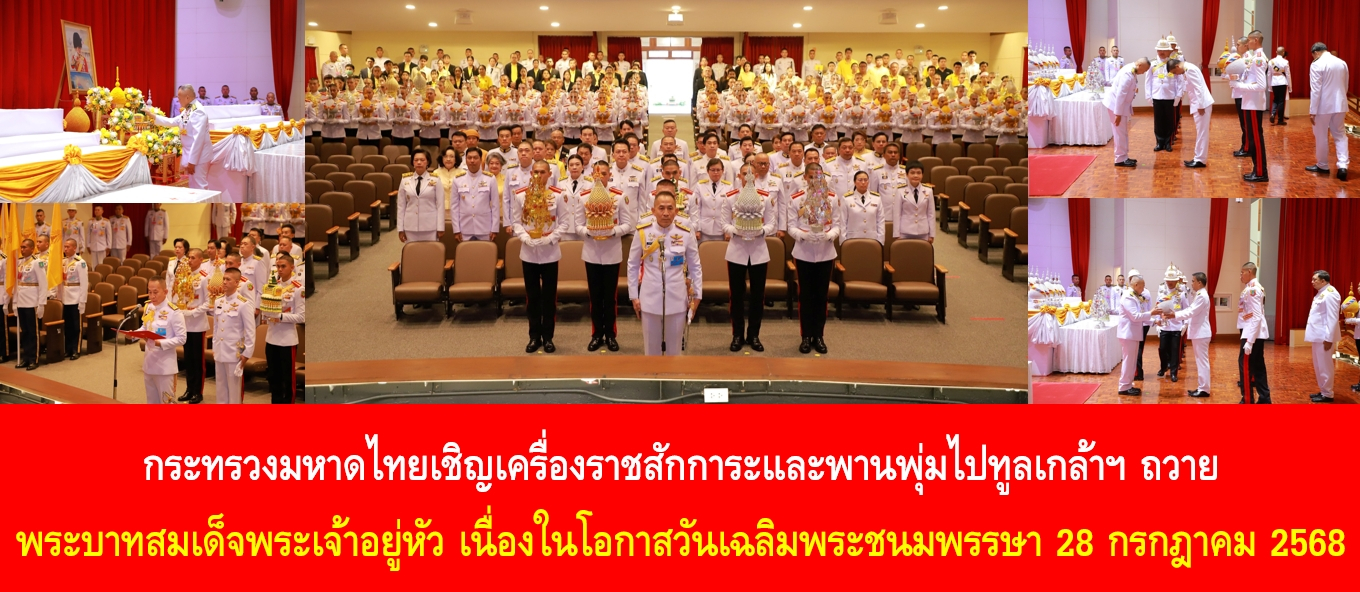 เนื่องในโอกาสวันเฉลิมพระชนมพรรษา พระบาทสมเด็จพระเจ้าอยู่หัว 28 กรกฎาคม 2568 ข้าราชการ พนักงาน เจ้าหน้าที่ และภาคีเครือข่ายของกระทรวงมหาดไทย รวมถึงสมาคมแม่บ้านมหาดไทย ขอพระราชทานพระบรมราชานุญาต ถวายพระพรชัยมงคล ขออานุภาพแห่งคุณพระศรีรัตนตรัยและสิ่งศักดิ์สิทธิ์ในสากล ตลอดจนพระเทวานุภาพแห่งพระสยามเทวาธิราช และพระบรมเดชานุภาพแห่งสมเด็จพระบูรพมหากษัตริยาธิราชเจ้าทุกพระองค์ ได้โปรดอภิบาลประทานชัยมงคลให้ พระบาทสมเด็จพระเจ้าอยู่หัว ทรงเจริญด้วยจตุรพิธพรชัย ทรงพระเกษมสำราญ มีพระชนมายุยิ่งยืนนาน พระเกียรติคุณแผ่ไพศาลทั่วทิศานุทิศ สถิตเป็นมิ่งขวัญร่มเกล้าของปวงพสกนิกรชาวไทยตลอดกาลนิรันดร์
