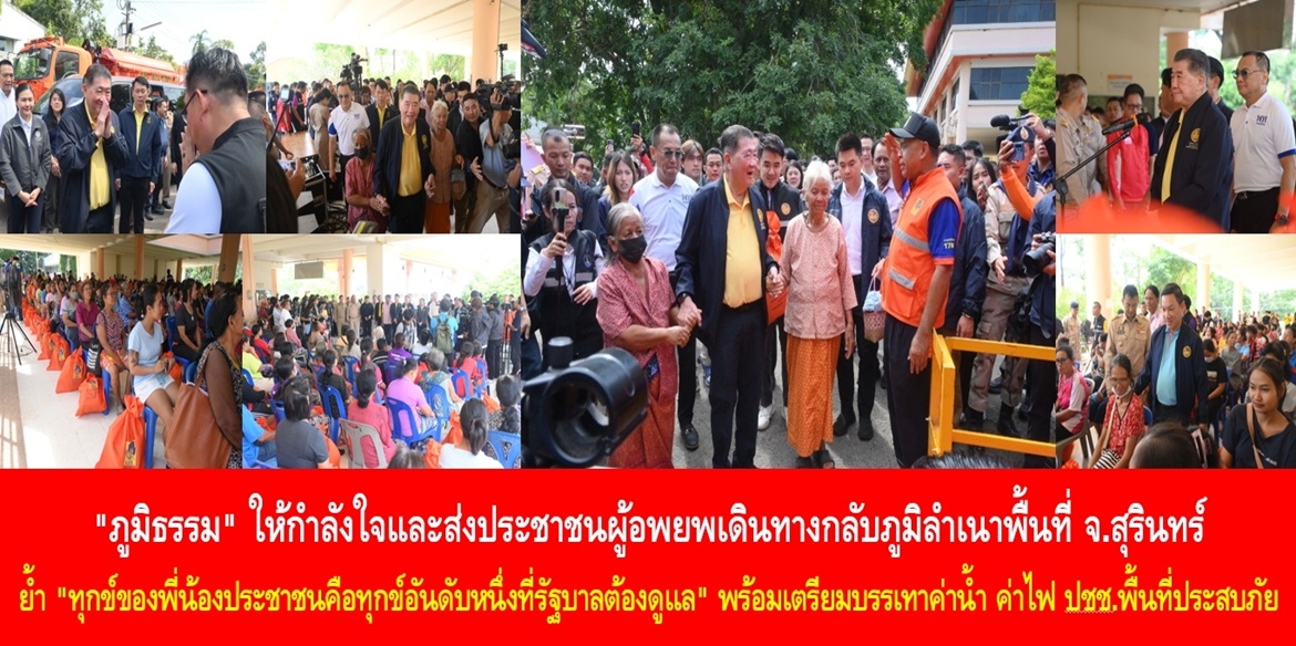 วันนี้ (9 ส.ค. 68) เวลา 09.30 น. นายภูมิธรรม เวชยชัย รองนายกรัฐมนตรีและรัฐมนตรีว่าการกระทรวงมหาดไทย พร้อมด้วย นายมาริษ เสงี่ยมพงษ์ รัฐมนตรีว่าการกระทรวงการต่างประเทศ นางสาวจิราพร สินธุไพร รัฐมนตรีประจำสำนักนายกรัฐมนตรี นายชนินทร์ รุ่งธนเกียรติ เลขานุการรัฐมนตรีว่าการกระทรวงมหาดไทย นายอรรษิษฐ์ สัมพันธรัตน์ ปลัดกระทรวงมหาดไทย นายนิรัตน์ พงษ์สิทธิถาวร อธิบดีกรมการปกครอง ร.ต.ท.ภพชนก ชลานุเคราะห์ อธิบดีกรมส่งเสริมการปกครองท้องถิ่น นางสุดฤทัย เลิศเกษม อธิบดีกรมประชาสัมพันธ์ นายชำนาญ ชื่นตา ผู้ว่าราชการจังหวัดสุรินทร์ และคณะ ให้กำลังใจและมอบถุงยังชีพให้กับประชาชนผู้อพยพบริเวณอาคารวิทยบริการและเทคโนโลยีสารสนเทศ มหาวิทยาลัยเทคโนโลยีราชมงคลสุรินทร์ อ.เมืองสุรินทร์ จ.สุรินทร์