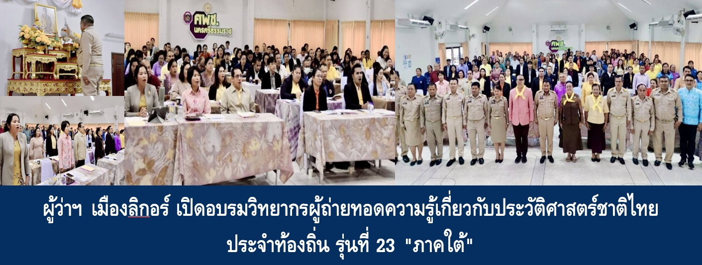 วันที่ 14 สิงหาคม 2568 เวลา 14.00 น. นายอรรษิษฐ์ สัมพันธรัตน์ ปลัดกระทรวงมหาดไทย มอบหมายให้ นายสมชาย ลีหล้าน้อย ผู้ว่าราชการจังหวัดนครศรีธรรมราช เป็นประธานพิธีเปิดโครงการฝึกอบรมวิทยากรเพื่อทำหน้าที่ผู้ถ่ายทอดความรู้เกี่ยวกับประวัติศาสตร์ชาติไทย ประจำท้องถิ่น ปีงบประมาณ พ.ศ. 2568 รุ่นที่ 4 จำนวน 5 วัน ระหว่างวันที่ 14 – 18 สิงหาคม 2568 ที่ศูนย์ศึกษาและพัฒนาชุมชนนครศรีธรรมราช อำเภอทุ่งสง จังหวัดนครศรีธรรมราช ซึ่งมีผู้เข้ารับการอบรมจาก 14 จังหวัดภาคใต้ รวม 120 คน โดยมี นายกองเอก ธารณา คชเสนี นายหมวดโท น้ำเพชร คชเสนี สัตยารักษ์ และ ดร.ลักษิกา เจริญศรี วิทยากรจากศูนย์อำนวยการใหญ่จิตอาสาพระราชทาน เป็นผู้บรรยาย นอกจากนี้ มีนายสงัด พืชพันธุ์ ผู้ตรวจราชการกรมการพัฒนาชุมชน ปฏิบัติหน้าที่ผู้อำนวยการศูนย์ศึกษาและพัฒนาชุมชนนครศรีธรรมราช หัวหน้าส่วนราชการและนายอำเภอประจำจังหวัดนครศรีธรรมราช พร้อมด้วย นางสาวรัตนา สรภูมิ ผู้อำนวยการสถาบันดำรงราชานุภาพ สำนักงานปลัดกระทรวงมหาดไทย เข้าร่วมพิธี