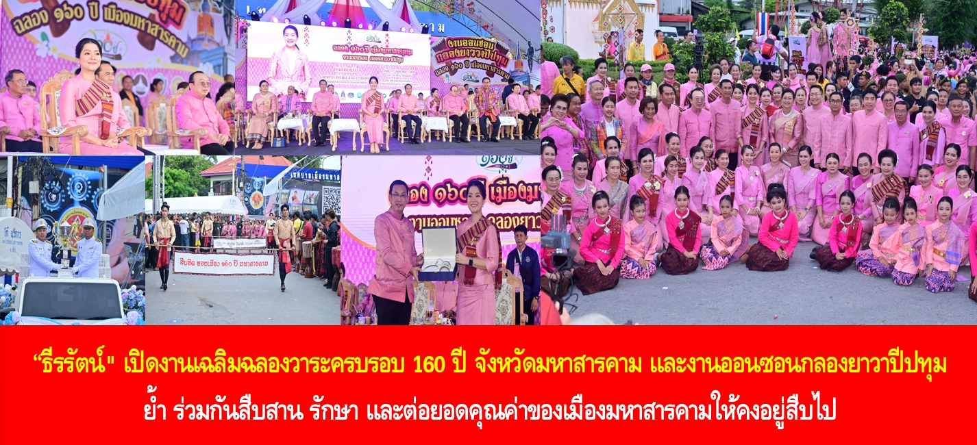 เมื่อวานนี้ (22 ก.ค. 68) เวลา 17.00 น. น.ส.ธีรรัตน์ สำเร็จวาณิชย์ รัฐมนตรีช่วยว่าการกระทรวงมหาดไทย เป็นประธานพิธีเปิดงานเฉลิมฉลองวาระครบรอบ 160 ปี เมืองมหาสารคาม และงานออนซอนกลองยาวาปีปทุม ณ วงเวียนหอนาฬิกาจังหวัดมหาสารคาม ตำบลตลาด อำเภอเมืองมหาสารคาม จังหวัดมหาสาสาม โดยมี นายสุทิน คลังแสง รัฐมนตรีว่าการกระทรวงกลาโหม คนที่ 42 นายรัฐ คลังแสง สมาชิกสภาผู้แทนราษฎร จังหวัดมหาสารคาม เขต 6 นายวิบูรณ์ แววบัณฑิต ผู้ว่าราชการจังหวัดมหาสารคาม หัวหน้าส่วนราชการ ข้าราชการ พนักงานรัฐวิสาหกิจ กำนัน ผู้ใหญ่บ้าน ผู้บริหารองค์กรปกครองส่วนท้องถิ่น สมาชิกสภาองค์กรปกครองส่วนท้องถิ่น ภาคีเครือข่ายในพื้นที่ และพี่น้องประชาชนชาวจังหวัดมหาสารคาม เข้าร่วมพิธีเป็นจำนวนมาก