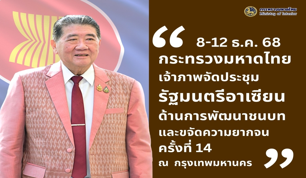 “ในส่วนของประเทศไทย นำโดยกระทรวงมหาดไทย ในฐานะหน่วยประสานงานหลัก (Focal Point) การขับเคลื่อนกรอบความร่วมมืออาเซียนด้านการพัฒนาชนบทและขจัดความยากจนระดับประเทศของประเทศไทย (SOMRDPE Thailand) มีกำหนดเป็นเจ้าภาพจัดการประชุมรัฐมนตรีอาเซียนด้านการพัฒนาชนบทและขจัดความยากจน ครั้งที่ 14 (The Fourteenth ASEAN Ministers Meeting on Rural Development and Poverty Eradication: 14th AMRDPE) และการประชุมอื่น ๆ ที่เกี่ยวข้อง ในปีนี้ (พ.ศ. 2568) ซึ่งถือเป็นภารกิจสำคัญและเป็นโอกาสที่ดีของประเทศไทยที่จะได้แสดงบทบาทนำในการผลักดันนโยบายด้านการพัฒนาชนบทและขจัดความยากจน ผ่านกลไกความร่วมมือพหุภาคีในเวทีอาเซียน โดยมีรัฐมนตรีว่าการกระทรวงมหาดไทย ดำรงตำแหน่งเป็นประธานรัฐมนตรีอาเซียนด้านการพัฒนาชนบทและขจัดความยากจน (AMRDPE Chair) ระยะเวลา 2 ปี และปลัดกระทรวงมหาดไทย ดำรงตำแหน่งเป็นประธานเจ้าหน้าที่อาวุโสอาเซียนด้านการพัฒนาชนบทและขจัดความยากจน (SOMRDPE Chair) ระยะเวลา 1 ปี ทั้งนี้ ภายใต้กลไกการดำเนินงานตามพันธกรณีระหว่างประเทศร่วมกันของประเทศสมาชิกอาเซียนได้กำหนดให้ประเทศสมาชิกอาเซียนหมุนเวียนกันเป็นเจ้าภาพจัดการประชุม AMRDPE ทุก 2 ปี และ SOMRDPE ทุก 1 ปี เรียงลำดับตามตัวอักษรชื่อประเทศ” นายภูมิธรรม กล่าว
