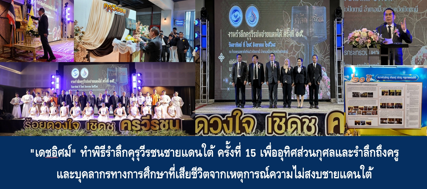 วานนี้ (24 ส.ค.68) นายเดชอิศม์ ขาวทอง รัฐมนตรีช่วยว่าการกระทรวงมหาดไทย เป็นประธานในพิธี เปิดงานรำลึกคุรุวีรชนจังหวัดชายแดนภาคใต้ ครั้งที่ 15 เพื่อทำบุญอุทิศส่วนกุศล และรำลึกถึงครูและบุคลากรทางการศึกษาที่เสียชีวิต จากเหตุการณ์ความไม่สงบฯ ณ โรงแรมเซาท์เทิร์น วิว ปัตตานี อำเภอเมือง จังหวัดปัตตานี โดยมี นางพาตีเมาะ สะดียามู ผู้ว่าราชการจังหวัดปัตตานี รองผู้ว่าราชการจังหวัดปัตตานี ประธานสมาพันธ์ครูจังหวัดชายแดนภาคใต้ ผู้บริหาร ข้าราชการครูและบุคลากรทางการศึกษาในสังกัดสามจังหวัดชายแดนภาคใต้ ปัตตานี ยะลา นราธิวาส และ 4 อำเภอของจังหวัดสงขลา เข้าร่วมเป็นจำนวนมาก