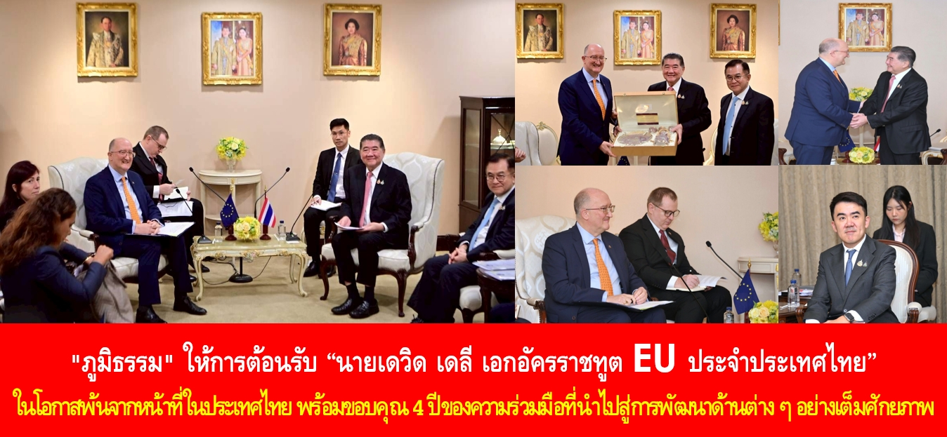 วันนี้ (28 ส.ค. 68) เวลา 13.00 น. นายภูมิธรรม เวชยชัย รองนายกรัฐมนตรีและรัฐมนตรีว่าการกระทรวงมหาดไทย รักษาราชการแทนนายกรัฐมนตรี ให้การต้อนรับและหารือร่วมกับ นายเดวิด เดลี เอกอัครราชทูตสหภาพยุโรปประจำประเทศไทย ในโอกาสเข้าเยี่ยมคารวะและอำลาหน้าที่เอกอัครราชทูต โดยมี นายวิสาร เตชะธีราวัฒน์ ผู้ช่วยรัฐมนตรีประจำกระทรวงมหาดไทย นายเกรียงเดช เข็มทอง ที่ปรึกษารัฐมนตรีว่าการกระทรวงมหาดไทย นายจิรายุ ห่วงทรัพย์ โฆษกประจำสำนักนายกรัฐมนตรี นายชนินทร์ รุ่งธนเกียรติ เลขานุการรัฐมนตรีว่าการกระทรวงมหาดไทย นางครองขนิษฐ รักษ์เจริญ อธิบดีกรมยุโรป และเจ้าหน้าที่ที่เกี่ยวข้อง ร่วมให้การต้อนรับและหารือ ณ ห้องรับรอง 1 ตึกบัญชาการ 1 ทำเนียบรัฐบาล