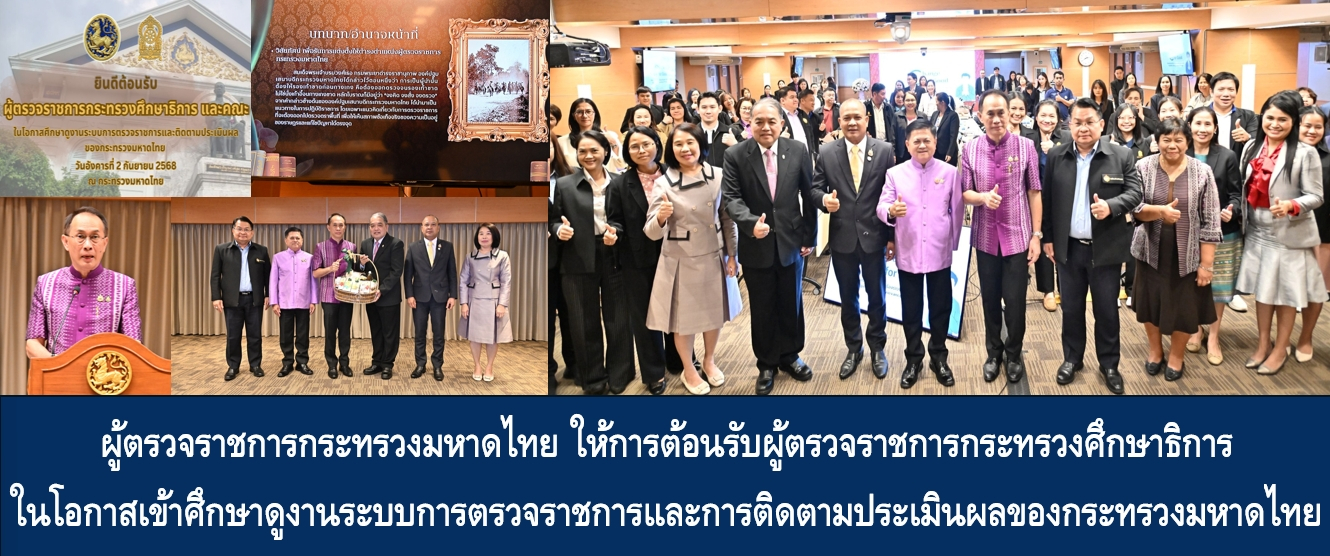 เมื่อวันที่ 2 ก.ย. 68 เวลา 13.00 น. นายณัฐวัสส์ วิริยานภาภรณ์ หัวหน้าผู้ตรวจราชการกระทรวงมหาดไทย พร้อมด้วย นายนฤชา โฆษาศิวิไลซ์ รองหัวหน้าผู้ตรวจราชการกระทรวงมหาดไทย ร่วมให้การต้อนรับ นายสุรศักดิ์ อินศรีไกร หัวหน้าผู้ตรวจราชการกระทรวงศึกษาธิการ พร้อมด้วยนายชาตรี ม่วงสว่าง ผู้ตรวจราชการกระทรวงศึกษาธิการ นายสมใจ วิเศษทักษิณ ผู้ตรวจราชการกระทรวงศึกษาธิการ ว่าที่ร้อยตรี เจษฎาภรณ์ พรหนองแสน ผู้ตรวจราชการกระทรวงศึกษาธิการ นายพิเชฐร์ วันทอง ผู้ตรวจราชการกระทรวงศึกษาธิการ นายชูสิน วรเดช ผู้ตรวจราชการกระทรวงศึกษาธิการ และบุคลากรในสังกัดกระทรวงศึกษาธิการ รวม 90 คน ในโอกาสเข้าศึกษาดูงานกระทรวงมหาดไทยพร้อมรับฟังการบรรยายให้ความรู้เกี่ยวกับระบบการตรวจราชการและติดตามประเมินผลของกระทรวงมหาดไทย โดยมีหัวหน้าหน่วยงานในสังกัดสำนักงานปลัดกระทรวงมหาดไทย และเจ้าหน้าที่ที่เกี่ยวข้อง ร่วมด้วย