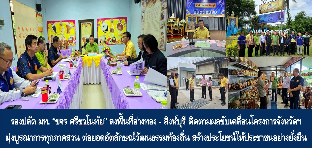รองปลัด มท. “ขจร ศรีชวโนทัย” ลงพื้นที่อ่างทอง–สิงห์บุรี ติดตามผลขับเคลื่อนโครงการจังหวัดอ่างทอง-สิงห์บุรี มุ่งบูรณาการทุกภาคส่วน ต่อยอดอัตลักษณ์วัฒนธรรมท้องถิ่น สร้างประโยชน์ให้ประชาชนอย่างยั่งยืน