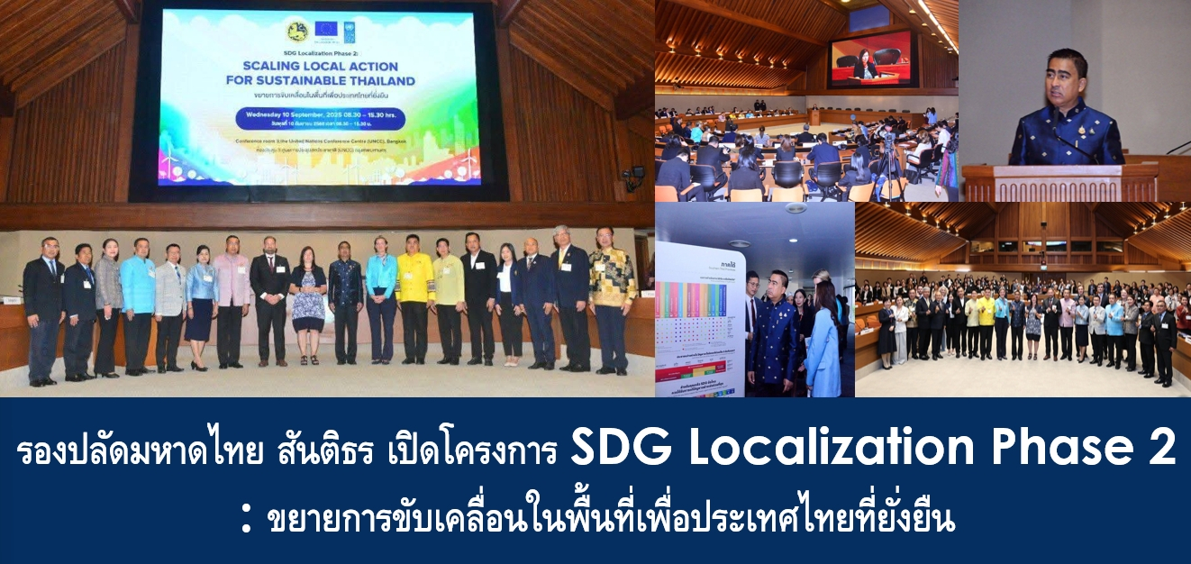 วานนี้ (10 ก.ย. 68) เวลา 09.00 น. นายอรรษิษฐ์ สัมพันธรัตน์ ปลัดกระทรวงมหาดไทย มอบหมาย นายสันติธร ยิ้มละมัย รองปลัดกระทรวงมหาดไทย หัวหน้ากลุ่มภารกิจด้านพัฒนาชุมชนและส่งเสริมการปกครองท้องถิ่น เป็นประธานเปิดโครงการเสริมสร้างความเข้มแข็งการนำเป้าหมายการพัฒนาที่ยั่งยืนไปปฏิบัติในพื้นที่ ระยะที่ 2 (SDG Localization Phase 2) ยกระดับการขับเคลื่่อนในระดับพื้นที่ เพื่อประเทศไทยที่ยั่งยืน ณ ห้อง Conference Room 3 ศูนย์ประชุมแห่งสหประชาชาติ (UNCC) กรุงเทพฯ โดยมีผู้แทนจาก United Nation ได้แก่ คุณซาร่า เรโซอาญิ (Ms. Sara Rezoagli) อุปทูตรักษาการสหภาพยุโรปประจำประเทศไทย และ คุณนีฟ คอลิเออร์-สมิธ (Ms. Niamph Collier-Smith) ผู้แทนโครงการพัฒนาแห่งสหประชาชาติประจำประเทศไทย พร้อมด้วย ผู้ว่าราชการจังหวัด รองผู้ว่าราชการจังหวัด หัวหน้าสำนักงานจังหวัด จากจังหวัดนำร่อง นายศิริพันธ์ ศรีกงพลี รองอธิบดีกรมส่งเสริมการปกครองท้องถิ่น ผู้แทนจากหน่วยงานที่เกี่ยวข้อง และเจ้าหน้าที่ที่เกี่ยวข้อง เข้าร่วมโครงการฯ