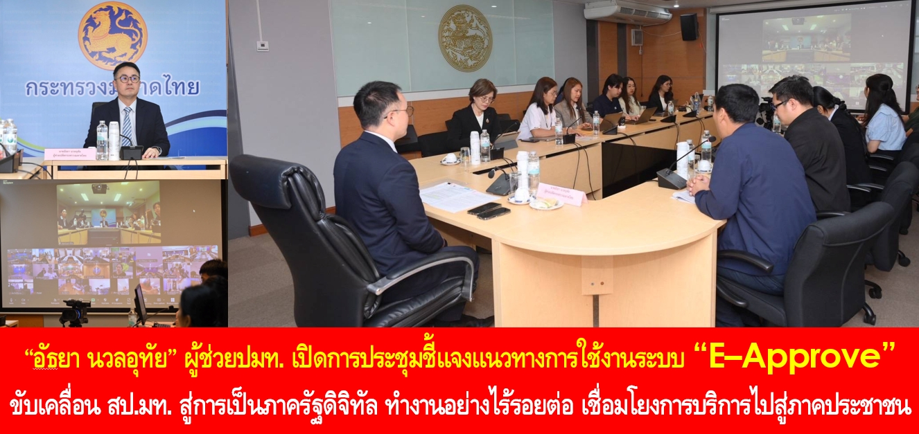 นายอัธยา กล่าวว่า ระบบ E – Approve เป็นหนึ่งในก้าวแรกของนวัตกรรม ของสำนักงานปลัดกระทรวงมหาดไทย ซึ่งสอดรับกับแนวทางการพัฒนาระบบ e-Office ของ สป.มท. และเป็นจุดเริ่มต้นที่สำคัญของการเดินทางสู่องค์กรดิจิทัล สามนโยบายภาครัฐดิจิตอลของรัฐบาล โดย กองการเจ้าหน้าที่ สป. พร้อมด้วยหน่วยงานที่เกี่ยวข้อง ได้ริเริ่มพัฒนาระบบนี้ขึ้น ในช่วงปลายปี 2567 เพื่อแก้ไขข้อจำกัดของกระบวนการทำงาน ด้วยการลดขั้นตอน ลดการใช้กระดาษ (Paperless) เพิ่มความสะดวกรวดเร็วในการเสนอเรื่องขออนุญาตฯ เป็นไปตามระยะเวลาที่กำหนดไว้ และถูกต้องตามกฎหมาย ระเบียบ และข้อสั่งการที่เกี่ยวข้อง ซึ่งได้รับความอนุเคราะห์จากศูนย์เทคโนโลยีสารสนเทศและการสื่อสาร สป. ที่ทำให้การพัฒนาระบบ E – Approve นี้เกิดขึ้นได้อย่างเป็นรูปธรรม และที่สำคัญคือการเป็นเครื่องมือสำหรับผู้บริหารของกระทรวงมหาดไทยในการกำกับติดตามข้อมูลการเดินทางไปราชการของผู้ว่าราชการจังหวัดในภาพรวมได้อย่างมีประสิทธิภาพ