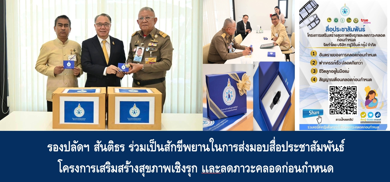 เมื่อวันที่ 2 ต.ค. 68 เวลา 11.30 น. นายอรรษิษฐ์ สัมพันธรัตน์ ปลัดกระทรวงมหาดไทย มอบหมาย นายสันติธร ยิ้มละมัย รองปลัดกระทรวงมหาดไทย หัวหน้ากลุ่มภารกิจด้านพัฒนาชุมชนและส่งเสริมการปกครองท้องถิ่น ร่วมเป็นสักขีพยานในการส่งมอบสื่อประชาสัมพันธ์โครงการเสริมสร้างสุขภาพเชิงรุก เเละลดภาวะคลอดก่อนกำหนด จำนวน 300 กล่อง ณ สนามเสือป่า พระราชวังดุสิต โดยมี พลอากาศโท ภักดี แสง- ชูโต ผู้ช่วยราชเลขานุการในพระองค์ฯ เป็นผู้รับมอบ พร้อมด้วย นายสมพันธ์ จารุมิลินท รองประธานกรรมการบริหาร บริษัท ทรูวิชั่นส์ กรุ๊ป จำกัด ตลอดจนผู้แทนหน่วยงานที่เกี่ยวข้อง ร่วมในการรับมอบ