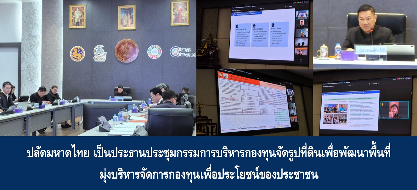 การประชุมในวันนี้ ที่ประชุมได้รับทราบรายงานผลการตรวจสอบภายใน ประจำปีบัญชี 2568 ไตรมาสที่ 4 และรายงานความคืบหน้าโครงการศึกษาและจัดทำแผนการลงทุนหาผลประโยชน์ของกองทุนจัดรูปที่ดินเพื่อพัฒนาพื้นที่ โดยที่ประชุมได้ขอให้ศึกษาและดูแบบอย่างของกองทุนจัดรูปที่ดินประเทศต่าง ๆ ที่มีการบริหารจัดการให้เกิดประโยชน์สูงสุดตามวัตถุประสงค์ของกองทุน เพื่อจะทำให้เกิดดอกผลที่จะเป็นประโยชน์ตามวัตถุประสงค์ต่อไป