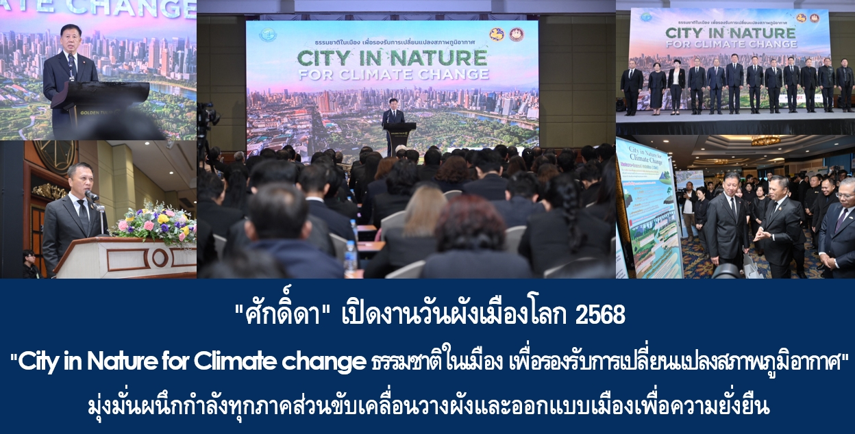 วันนี้ (7 พ.ย. 68) เวลา 09.00 น. นายศักดิ์ดา วิเชียรศิลป์ รัฐมนตรีช่วยว่าการกระทรวงมหาดไทย เป็นประธานเปิดงานสัมมนาทางวิชาการเนื่องในวันผังเมืองโลก พ.ศ. 2568 (World Town Planning Day) ภายใต้แนวคิด “City in Nature for Climate change ธรรมชาติในเมือง เพื่อรองรับการเปลี่ยนแปลงสภาพภูมิอากาศ” โดยมี ดาตุก วัน ไซดี วัน อับดุลลอฮ์ เอกอัครราชทูตมาเลเซียประจำประเทศไทย นายจุมพฏ วรรณฉัตรสิริ รองปลัดกระทรวงมหาดไทย หัวหน้ากลุ่มภารกิจด้านสาธารณภัยและพัฒนาเมือง นายพงษ์นรา เย็นยิ่ง อธิบดีกรมโยธาธิการและผังเมือง นายอุกกฤต สตภูมินทร์ รองอธิบดีกรมทรัพยากรทางทะเลและชายฝั่ง Ms. Jing Yu, Ph. D. Deputy Chief, UN-Habitat Bangkok Multi-Country Programme Office คณะผู้บริหารกรมโยธาธิการและผังเมือง ผู้ว่าราชการจังหวัด 76 จังหวัดหรือผู้แทน หัวหน้าส่วนราชการ แขกผู้มีเกียรติ ร่วมพิธี ณ ห้องแกรนด์บอลรูม โรงแรมโกลเด้น ทิวลิป ซอฟเฟอริน กรุงเทพฯ และผ่านสื่ออิเล็กทรอนิกส์