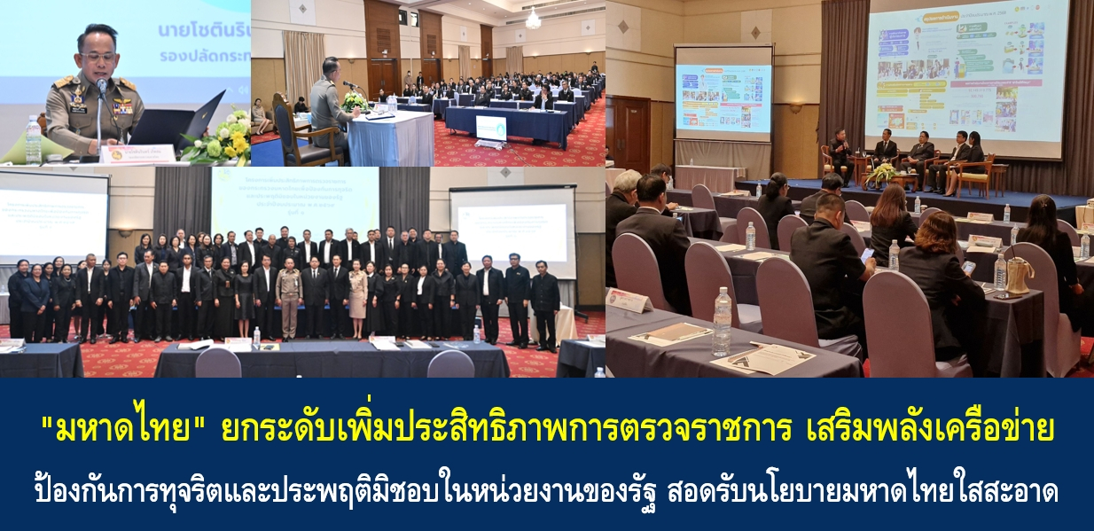 วันนี้ (15 ธ.ค. 68) เวลา 09.30 น. นายอรรษิษฐ์ สัมพันธรัตน์ ปลัดกระทรวงมหาดไทย มอบหมายให้ นายโชตินรินทร์ เกิดสม รองปลัดกระทรวงมหาดไทย ด้านบริหาร เป็นประธานเปิดการสัมมนาและมอบแนวทางเพิ่มประสิทธิภาพการตรวจราชการของกระทรวงมหาดไทย เพื่อป้องกันการทุจริตและประพฤติมิชอบในหน่วยงานของรัฐ ปี 2569 รุ่นที่ 1 โดยมี นายสมภพ สมิตะสิริ หัวหน้าผู้ตรวจราชการกระทรวงมหาดไทย ว่าที่ ร.ต.ตระกูล โทธรรม ผู้ตรวจราชการกระทรวงมหาดไทย นายชำนาญ ชื่นตา ผู้ตรวจราชการกระทรวงมหาดไทย นางพรรณวิภา ปิยัมปุตระ รองผู้ว่าราชการจังหวัดกาญจนบุรี พร้อมด้วยผู้บริหารกรม ผู้ตรวจราชการกรม ผู้ตรวจราชการกรุงเทพมหานคร ผู้แทนหน่วยงานรัฐวิสาหกิจในสังกัดกระทรวงมหาดไทย และข้าราชการที่เกี่ยวข้อง เข้าร่วม ณ ห้องประชุมไพลินคอนเวนชั่น โรงแรมเฟลิกซ์ ริเวอร์ แคว รีสอร์ท อ.เมืองกาญจนบุรี จ.กาญจนบุรี
