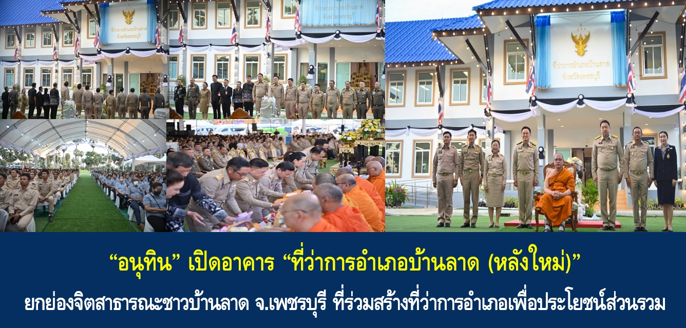 เมื่อวันที่ 19 ธ.ค. 68 เวลา 16.30 น. นายอนุทิน ชาญวีรกูล นายกรัฐมนตรีและรัฐมนตรีว่าการกระทรวงมหาดไทย เป็นประธานพิธีเปิดป้ายอาคารที่ว่าการอำเภอบ้านลาด (หลังใหม่) จังหวัดเพชรบุรี โดยมี นายสุชาติ ชมกลิ่น รองนายกรัฐมนตรีและรัฐมนตรีว่าการกระทรวงทรัพยากรธรรมชาติและสิ่งแวดล้อม น.ส.ไตรศุลี ไตรสรณกุล เลขาธิการนายกรัฐมนตรี นายอรรษิษฐ์ สัมพันธรัตน์ ปลัดกระทรวงมหาดไทย นายนฤชา โฆษาศิวิไลซ์ อธิบดีกรมการปกครอง ร.ต.ท.ภพชนก ชลานุเคราะห์ ผู้ว่าราชการจังหวัดเพชรบุรี นายปรีชา อนันต์วรนาถ นายอำเภอบ้านลาด และหัวหน้าส่วนราชการ นายอำเภอในพื้นที่จังหวัดเพชรบุรี ข้าราชการ กำนัน ผู้ใหญ่บ้าน อสม. และประชาชน จำนวน 1,000 คน ร่วมให้การต้อนรับ