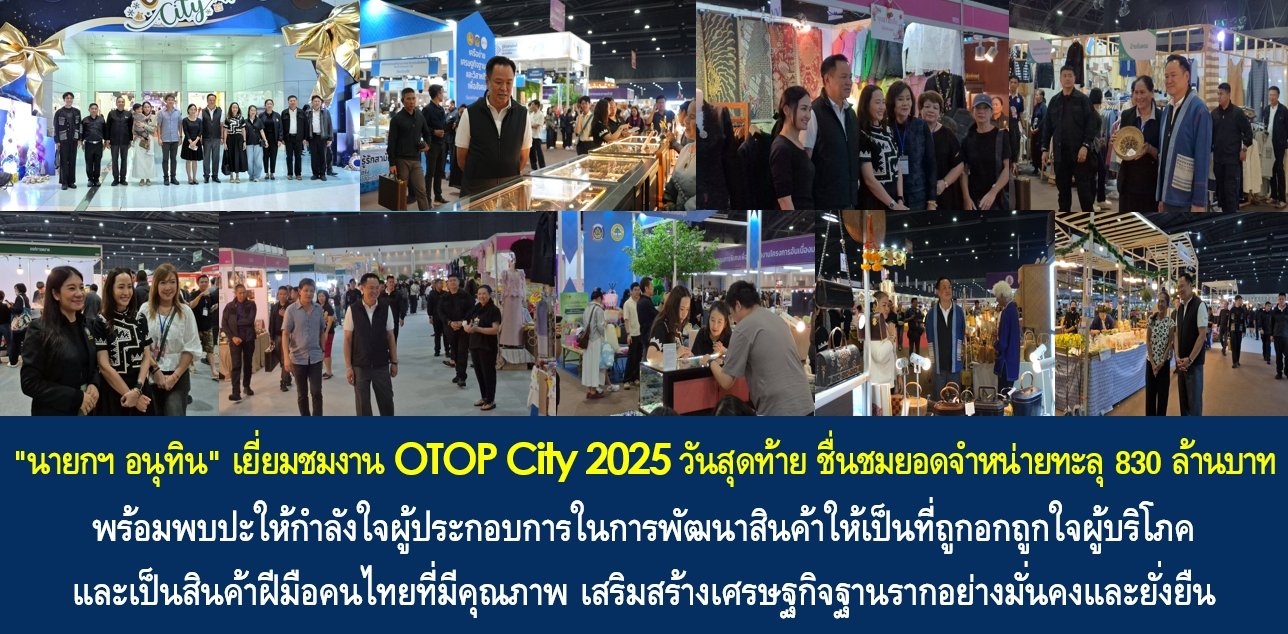 สำหรับยอดจำหน่ายสินค้า OTOP ในงาน OTOP CITY 2025 ตั้งแต่วันที่ 20 – 28 ธันวาคม 2568 (ข้อมูล ณ วันที่ 28 ธ.ค. 68 เวลา 19.00 น.) สามารถจำหน่ายสินค้าสร้างรายได้ให้กับประชาชน เสริมสร้างเศรษฐกิจฐานรากแล้วมากกว่า 830 ล้านบาท ซึ่งสูงกว่างาน OTOP CITY ในปี 2024 มากกว่าร้อยละ 20 โดยเฉพาะในตลอดวันนี้ซึ่งเป็นวันสุดท้ายพบว่า มีประชาชนนิยมเดินทางมาจับจ่ายใช้สอยกันเป็นจำนวนมาก จนกระทั่งลานจอดรถของอิมแพคชาเลนเจอร์ไม่เพียงพอต่อยานพาหนะที่เดินทางเข้ามาในงาน และจากการสอบถามประชาชนที่เดินทางมาตั้งแต่วันแรก ต่างนิยมเดินทางมาเลือกซื้อเลือกหาสินค้าจากผู้ประกอบการ OTOP โดยเฉพาะผู้ประกอบการที่ได้ร่วมลงทะเบียนตามโครงการคนละครึ่งพลัส