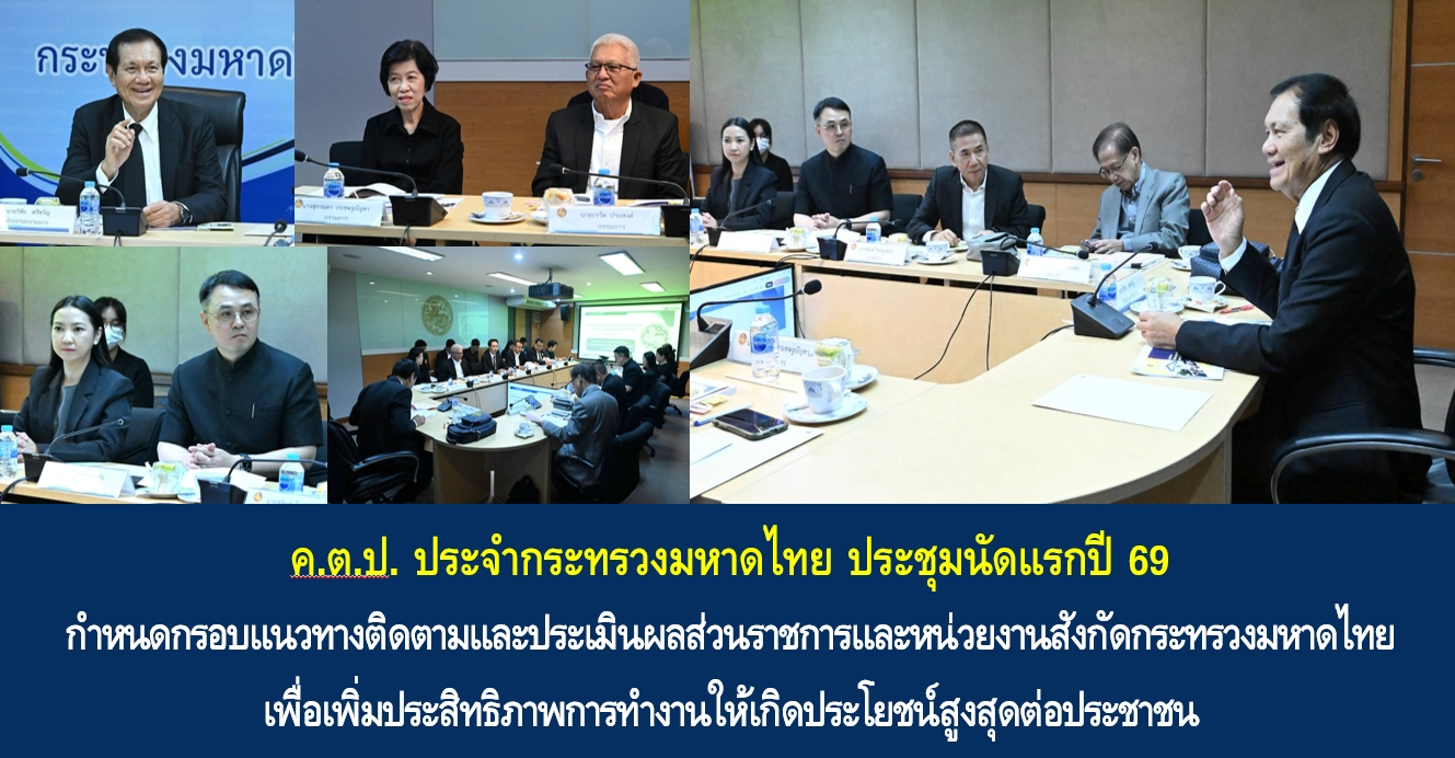การประชุมคณะกรรมการตรวจสอบและประเมินผลประจำกระทรวงมหาดไทยในวันนี้ ที่ประชุมได้พิจารณาการกำหนดประเด็นการตรวจสอบและประเมินผลภาคราชการ ประจำปี 69 ตามกรอบแผนยุทธศาสตร์ของหน่วยงานในสังกัดสำนักงานปลัดกระทรวงมหาดไทย ได้แก่ กลุ่มยุทธศาสตร์การเปลี่ยนแปลง กระทรวงมหาดไทย สำนักนโยบายและแผน และสำนักพัฒนาและส่งเสริมการบริหารราชการจังหวัด พร้อมทั้งกำหนดประเด็นการตรวจสอบและประเมินผล ตลอดจนถึงแผนปฏิบัติและขั้นตอนรวมถึงปฏิทินการตรวจสอบและประเมินผลประจำปี 69 เพื่อให้เป็นไปตามระเบียบกฎหมายที่เกี่ยวข้อง