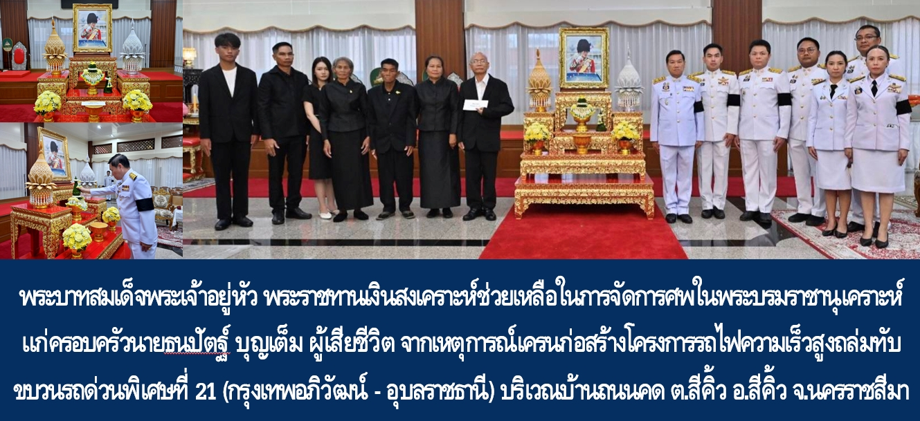 จากเหตุการณ์เครนก่อสร้างโครงการรถไฟความเร็วสูงถล่มทับขบวนรถด่วนพิเศษที่ 21 (กรุงเทพอภิวัฒน์ – อุบลราชธานี) บริเวณช่วงหลักกิโลเมตรที่ 220 บ้านถนนคด ตำบลสีคิ้ว อำเภอสีคิ้ว จังหวัดนครราชสีมา เมื่อวันที่ 14 ม.ค. 69 ส่งผลให้มีประชาชนได้รับบาดเจ็บและเสียชีวิตหลายราย
