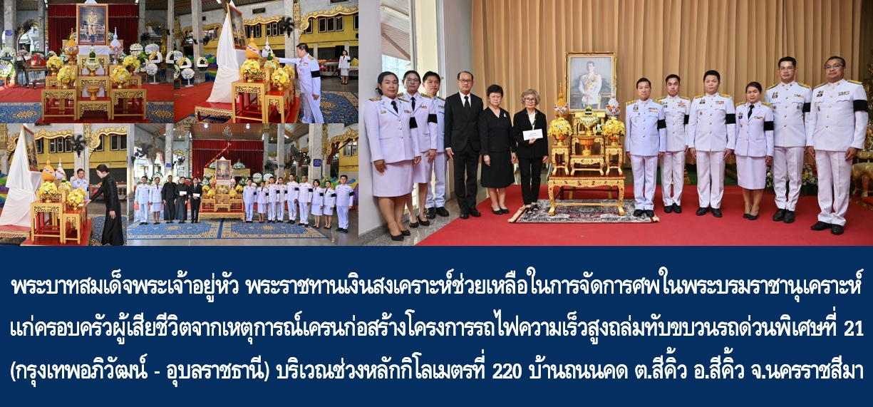 จากเหตุการณ์เครนก่อสร้างโครงการรถไฟความเร็วสูงถล่มทับขบวนรถด่วนพิเศษที่ 21 (กรุงเทพอภิวัฒน์ – อุบลราชธานี) บริเวณช่วงหลักกิโลเมตรที่ 220 บ้านถนนคด ตำบลสีคิ้ว อำเภอสีคิ้ว จังหวัดนครราชสีมา เมื่อวันที่ 14 ม.ค. 69 ส่งผลให้มีประชาชนได้รับบาดเจ็บและเสียชีวิตหลายราย