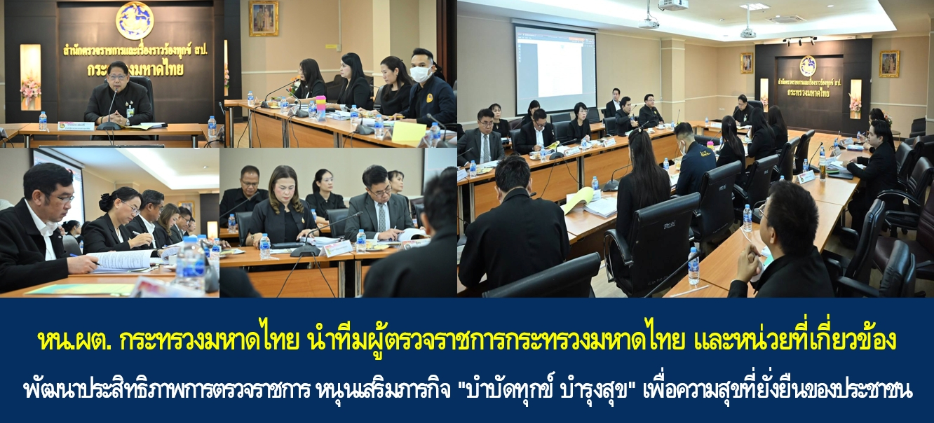 เมื่อวันที่ 21 ม.ค. 69 เวลา 09.30 น. ที่ห้องประชุมสำนักตรวจราชการและเรื่องราวร้องทุกข์ ชั้น 5 อาคารดำรงราชานุภาพ กระทรวงมหาดไทย นายสมภพ สมิตะสิริ หัวหน้าผู้ตรวจราชการกระทรวงมหาดไทย เป็นประธานการประชุมคณะกรรมการกำหนดแผนและติดตามผลผลการตรวจราชการของกระทรวงมหาดไทย ประจำปี 2569 โดยมีผู้ตรวจราชการกระทรวงมหาดไทย ผู้ตรวจราชการกรม ผู้อำนวยการสำนักตรวจราชการและเรื่องราวร้องทุกข์ ผู้เชี่ยวชาญ ผู้อำนวยการกลุ่มงาน และเจ้าหน้าที่ที่เกี่ยวข้อง เข้าร่วม