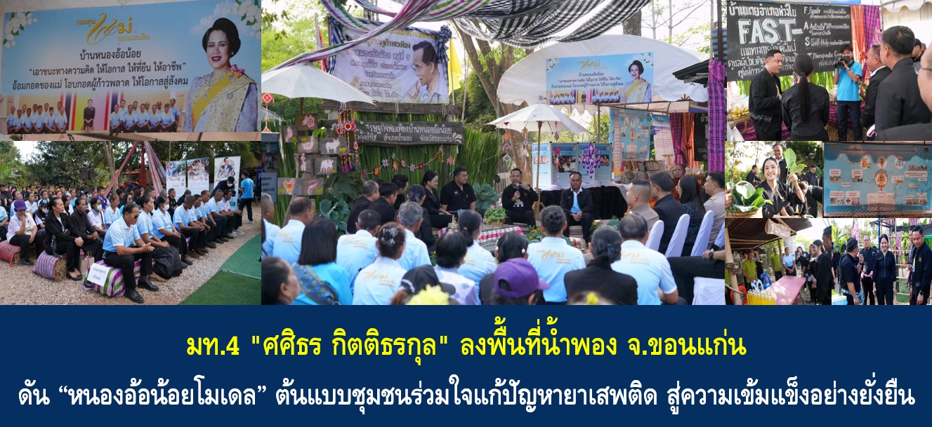วันที่ 22 ม.ค. 69 เวลา 13.30 น. ณ บ้านหนองอ้อน้อย หมู่ที่ 7 ตำบลกุดน้ำใส อำเภอน้ำพอง จังหวัดขอนแก่น นางสาวศศิธร กิตติธรกุล รัฐมนตรีช่วยว่าการกระทรวงมหาดไทย พร้อมด้วย นายภัทริส ณ นคร หัวหน้าคณะทำงานรัฐมนตรีช่วยว่าการกระทรวงมหาดไทย ลงพื้นที่อำเภอน้ำพอง จังหวัดขอนแก่น เพื่อติดตามการดำเนินงาน กองทุนแม่ของแผ่นดิน ซึ่งเป็นพื้นที่ที่ประสบความสำเร็จในการขับเคลื่อนงานตามหลัก “ศักดิ์สิทธิ์ ศรัทธา ปัญญา” ควบคู่กับการเสริมสร้างความเข้มแข็งของชุมชนในการป้องกันและแก้ไขปัญหายาเสพติด โดยมี นายยุทธนา โพธิวิหค รองผู้ว่าราชการจังหวัดขอนแก่น พร้อมด้วย นายไพโรจน์ โสภาพร รองอธิบดีกรมการพัฒนาชุมชน ผู้แทนกรมการพัฒนาชุมชน นายอำเภอน้ำพอง ผู้นำชุมชน คณะกรรมการกองทุนแม่ของแผ่นดิน และประชาชนในพื้นที่ ร่วมให้การต้อนรับ