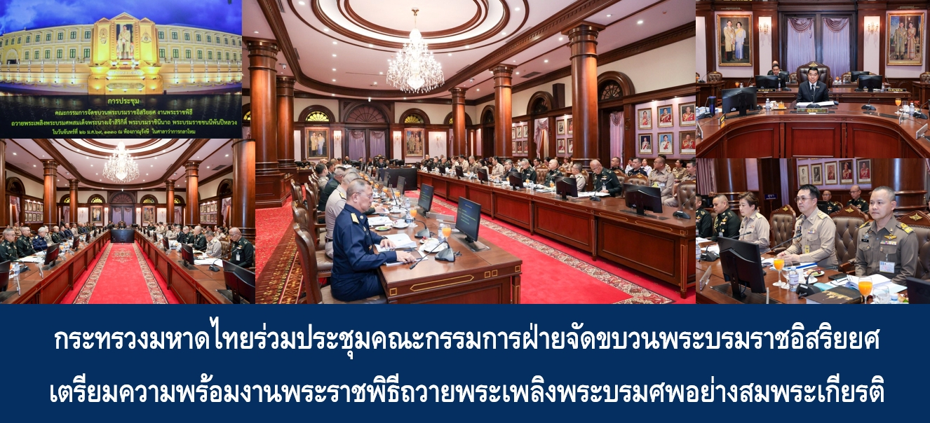 วานนี้ (26 ม.ค. 69) เวลา 13.30 น. นายอรรษิษฐ์ สัมพันธรัตน์ ปลัดกระทรวงมหาดไทย มอบหมายให้ นายอัธยา นวลอุทัย ผู้ช่วยปลัดกระทรวงมหาดไทย ร่วมประชุมคณะกรรมการฝ่ายจัดขบวนพระบรมราชอิสริยยศ งานพระราชพิธีถวายพระเพลิงพระบรมศพ สมเด็จพระนางเจ้าสิริกิติ์ พระบรมราชินีนาถ พระบรมราชชนนีพันปีหลวง ครั้งที่ 1/2569 โดยมีพลเอก ณัฐพล นาคพาณิชย์ รัฐมนตรีว่าการกระทรวงกลาโหม เป็นประธานการประชุม และมีผู้แทนหน่วยงานที่เกี่ยวข้อง เข้าร่วมการประชุม ณ ห้องประชุมภาณุรังษี ชั้น 3 ศาลาว่าการกระทรวงกลาโหม