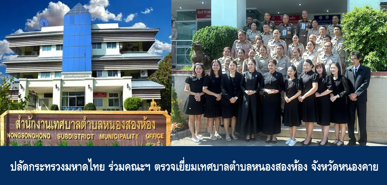 วันนี้ (6 ก.พ. 69) เวลา 12.30 น. นายอรรษิษฐ์ สัมพันธรัตน์ ปลัดกระทรวงมหาดไทย ร่วมตรวจเยี่ยมสำนักงานเทศบาลตำบลหนองสองห้อง อำเภอเมืองหนองคาย จังหวัดหนองคาย โดยมี พลเอก สุรยุทธ์ จุลานนท์ ประธานองคมนตรี นำคณะองคมนตรี หัวหน้าส่วนราชการระดับปลัดกระทรวง และหัวหน้าส่วนราชการที่เกี่ยวข้อง เข้าร่วม โดยนายสุริยา พรหมโคตร นายกเทศมนตรีตำบลหนองสองห้อง พร้อมด้วยคณะผู้บริหาร นายสุรชาติ บวรศักดิ์ ปลัดเทศบาลตำบลหนองสองห้อง และพนักงานเทศบาล ให้การต้อนรับ