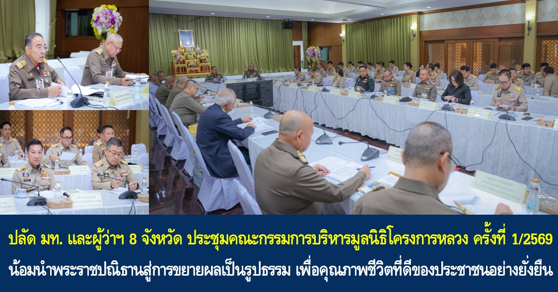 วันที่ 24 ก.พ. 69 เวลา 13.30 น. ที่อาคารรับรอง 606 สนามเสือป่า สำนักพระราชวัง เขตดุสิต กรุงเทพฯ นายอรรษิษฐ์ สัมพันธรัตน์ ปลัดกระทรวงมหาดไทย ในฐานะกรรมการบริหารมูลนิธิโครงการหลวง ประชุมกรรมการบริหารมูลนิธิโครงการหลวง ครั้งที่ 1/2569 โดยมี พลเอก กัมปนาท รุดดิษฐ์ องคมนตรี ในฐานะเลขาธิการ และประธานกรรมการบริหารมูลนิธิโครงการหลวง เป็นประธานการประชุม พลเรือเอก พงษ์เทพ หนูเทพ องคมนตรี เข้าร่วม พร้อมกันนี้มีผู้ว่าราชการจังหวัด ในฐานะกรรมการบริหารมูลนิธิฯ เข้าประชุมด้วย ได้แก่ นายรัฐพล นราดิศร ผู้ว่าราชการจังหวัดเชียงใหม่ นายชูชีพ พงษ์ไชย ผู้ว่าราชการจังหวัดเชียงราย นายวิบูรณ์ แววบัณฑิต ผู้ว่าราชการจังหวัดแม่ฮ่องสอน นายปิยพงศ์ ชูวงศ์ ผู้ว่าราชการจังหวัดลำพูน นายวิวัฒน์ อินทร์ไทยวงศ์ ผู้ว่าราชการจังหวัดลำปาง นางสาวอรอาภา โล่ห์วีระ ผู้ว่าราชการจังหวัดพะเยา นายปิยะ ปิจนำ ผู้ว่าราชการจังหวัดบุรีรัมย์ และนายชูศักดิ์ รู้ยิ่ง ผู้ว่าราชการจังหวัดตาก