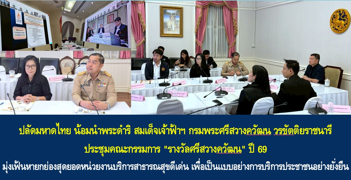 การประชุมในวันนี้ ที่ประชุมได้ร่วมกันพิจารณาแนวทางการรับข้อมูลเพื่อคัดเลือกสถานพยาบาล ปีพุทธศักราช 2569 รวมถึงอำนาจหน้าที่ของคณะกรรมการตรวจเยี่ยมโครงการ “รางวัลศรีสวางควัฒน” ประจำปีพุทธศักราช 2569 และช่วงเวลาตรวจเยี่ยมสถานพยาบาล ทั้งนี้ ปี 2569 มีกำหนดการรับสมัครตั้งแต่วันที่ 5 มีนาคม – 10 เมษายน 2569 โดยคณะกรรมการจะได้ลงพื้นที่ตรวจเยี่ยม ในช่วงระหว่างวันที่ 11 พฤษภาคม – 5 มิถุนายน 2569