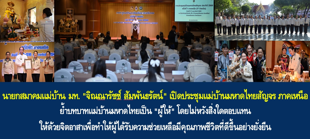 วันนี้ (27 ก.พ. 69) เวลา 09.00 น. ที่โรงแรมเวียงตากริเวอร์ไซด์ อำเภอเมืองตาก จังหวัดตาก นางจิณณารัชช์ สัมพันธรัตน์ นายกสมาคมแม่บ้านมหาดไทย เป็นประธานเปิดการประชุมสมาคมแม่บ้านมหาดไทยสัญจร ประจำปี 2569 ครั้งที่ 1 ภาคเหนือ โดยมี นางศลิษา ภิรมย์รัตน์ นางสุจริตรา ศรีนาม ที่ปรึกษานายกสมาคมแม่บ้านมหาดไทย นางจิรวรรณ เพ็ญพาส อุปนายกสมาคมแม่บ้านมหาดไทย (กรมที่ดิน) นายชูศักดิ์ รู้ยิ่ง ผู้ว่าราชการจังหวัดตาก นางชุติมา รู้ยิ่ง ประธานแม่บ้านมหาดไทยจังหวัดตาก นางกาญจนี รุจนเสรี ประธานแม่บ้านมหาดไทยจังหวัดกำแพงเพชร นางวิยะดา นราดิศร ประธานแม่บ้านมหาดไทยจังหวัดเชียงใหม่ นางรุ่งระวี มีทองคำ ประธานแม่บ้านมหาดไทยจังหวัดเพชรบูรณ์ นางณัษฐพร ชูวงศ์ ประธานแม่บ้านมหาดไทยจังหวัดลำพูน นางญิติพร ศิริโกศล ประธานแม่บ้านมหาดไทยจังหวัดสุโขทัย นางพุฒสดี ไตรศักดิ์ ประธานแม่บ้านมหาดไทยจังหวัดอุทัยธานี พร้อมด้วยรองผู้ว่าราชการจังหวัดตาก หัวหน้าส่วนราชการ นายอำเภอ และภาคีเครือข่าย เข้าร่วมเป็นจำนวนมาก