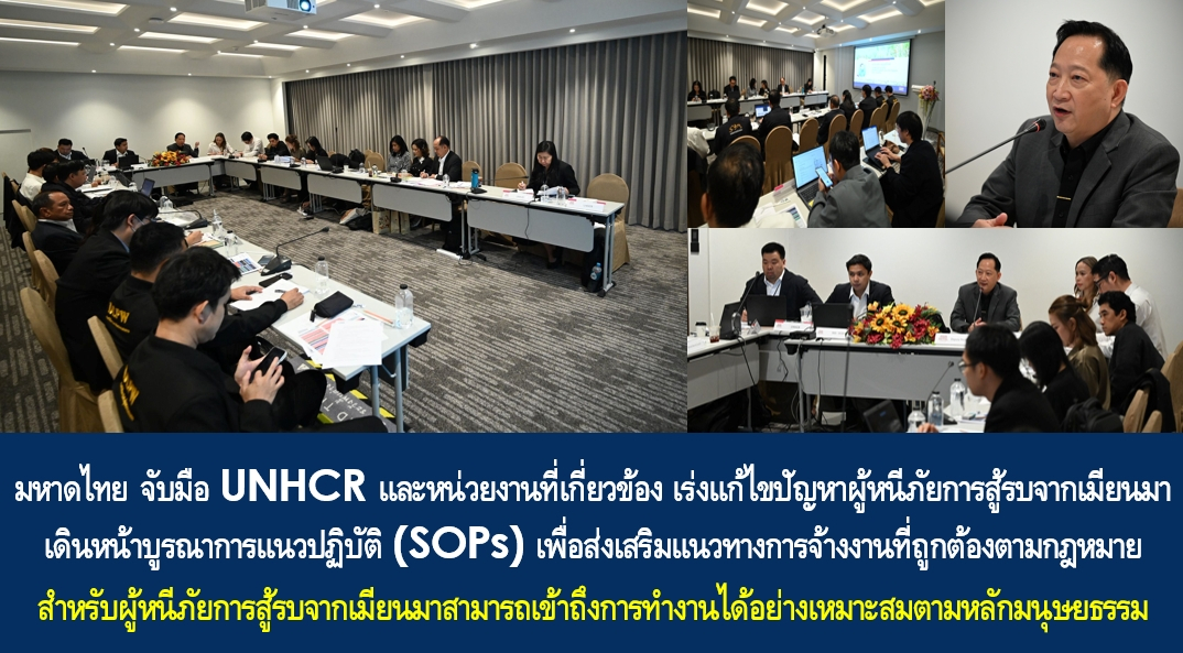 รองปลัดกระทรวงมหาดไทย กล่าวว่า กระทรวงมหาดไทยจัดการประชุมปรึกษาหารือเกี่ยวกับการบูรณาการแนวปฏิบัติ (SOPs) สำหรับการดำเนินการด้านการจ้างงานของผู้หนีภัยการสู้รบจากเมียนมา เพื่อร่วมกันพิจารณาแนวทางการดำเนินงานให้มีความชัดเจน เป็นเอกภาพ และสามารถนำไปใช้ได้อย่างมีประสิทธิภาพ ควบคู่กับการให้ความสำคัญในด้านการสื่อสารและประชาสัมพันธ์แนวปฏิบัติให้กับผู้ปฏิบัติงานในพื้นที่ นายจ้าง ผู้ประกอบการ และผู้หนีภัยการสู้รบจากเมียนมา เพื่อให้ทุกฝ่ายเข้าใจขั้นตอนและกระบวนการจ้างงานที่ถูกต้องตามกฎหมาย อันจะช่วยสนับสนุนนโยบายของรัฐบาลในการอนุญาตให้ผู้หนีภัยสามารถเข้าถึงการทำงานได้อย่างเหมาะสม โดยมีหน่วยงานที่เกี่ยวข้อง ได้แก่ กรมการปกครอง กระทรวงแรงงาน และกระทรวงสาธารณสุข ร่วมกันพิจารณาปรับปรุงมาตรฐานแนวปฏิบัติ (SOPs) โดยประสานความร่วมมือกับ UNHCR เพื่อให้แนวทางดังกล่าวมีความชัดเจน สามารถนำไปใช้ปฏิบัติได้จริง และรองรับการดำเนินงานในระดับพื้นที่ได้อย่างเหมาะสม