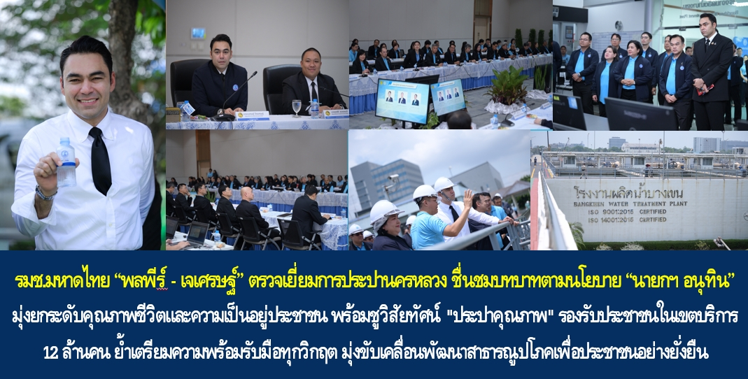 นายเจเศรษฐ์ กล่าวเพิ่มเติมว่า กปน. ต้องพร้อมรับมือกับสถานการณ์วิกฤตอย่างเป็นมืออาชีพ ด้วยการยกระดับระบบการบริหารความต่อเนื่องทางธุรกิจ (BCP) เพื่อเตรียมพร้อมรับมือภัยคุกคามทุกรูปแบบ ไม่ว่าจะเป็นภัยแล้ง น้ำท่วม ภาวะน้ำเค็มหนุน หรือภัยคุกคามทางไซเบอร์ เพื่อไม่ให้กระทบต่อการให้บริการประชาชนและภาคธุรกิจ พร้อมกันนี้ ควรติดตามสถานการณ์การสู้รบในภูมิภาคตะวันออกกลางอย่างใกล้ชิด เพื่อวิเคราะห์ผลกระทบและกำหนดมาตรการช่วยเหลือบรรเทาความเดือดร้อนของประชาชน โดยเน้นการบูรณาการการทำงานร่วมกับทั้งภาครัฐและเอกชน โดยเฉพาะหน่วยงานภายใต้กระทรวงมหาดไทย