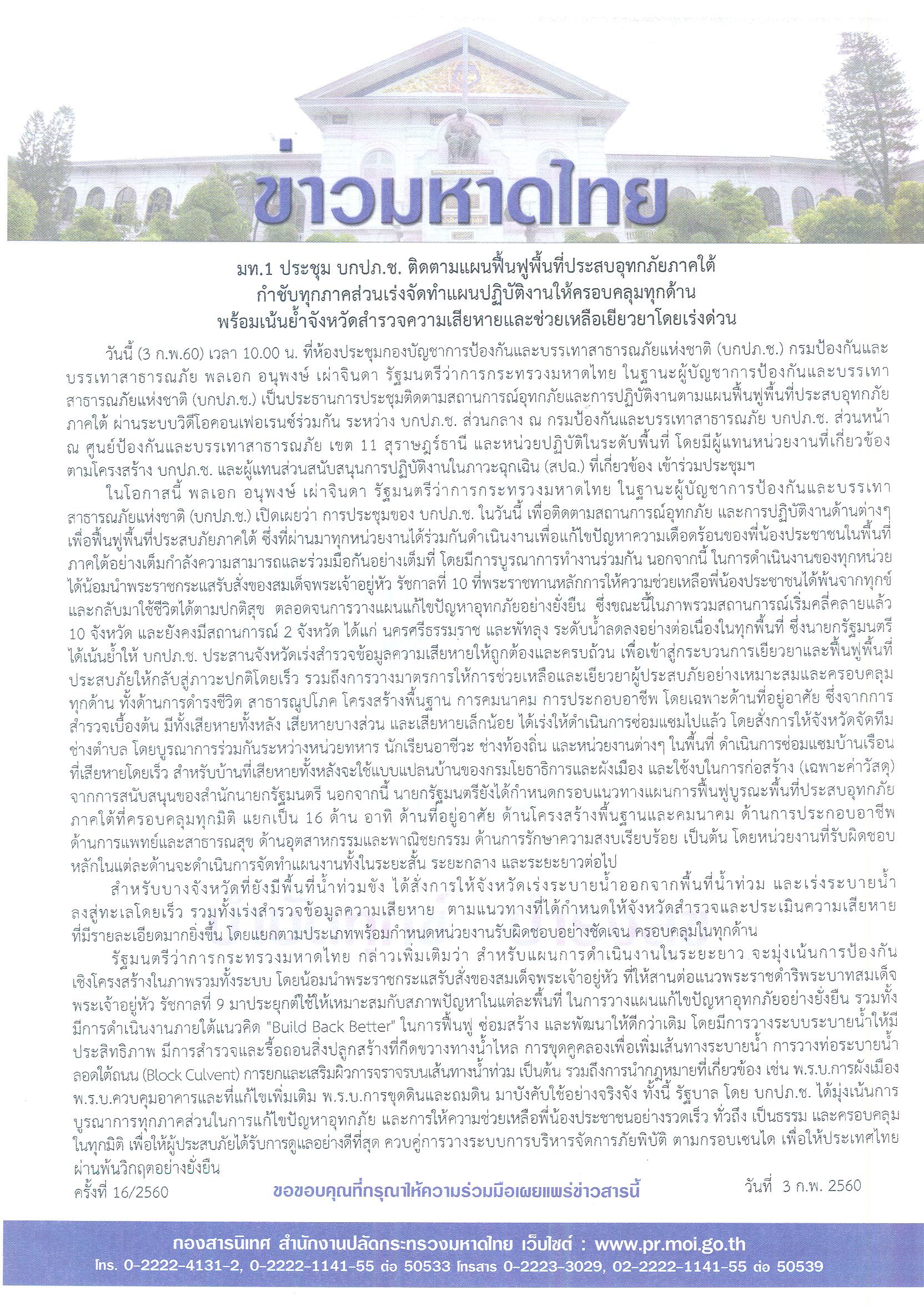 ข่าวมหาดไทย มท.1 ประชุม บกปภ.ช. ติดตามแผนฟื้นฟูพื้นที่ประสบอุทกภัยภาคใต้ กำชับทุกภาคส่วนเร่งจัดทำแผนปฏิบัติงานให้ครอบคลุมทุกด้าน พร้อมเน้นย้ำจังหวัดสำรวจความเสียหายและช่วยเหลือเยียวยาโดยเร่งด่วน โดย กองสารนิเทศ สำนักงานปลัดกระทรวงมหาดไทย 3 กุมภาพันธ์ 2017 3 กุมภาพันธ์ 2017 9 ยอดวิว ก่อนหน้า กระทรวงมหาดไทยเร่งบูรณาการข้อมูล แผนงาน และโครงการพัฒนาระบบโครงสร้างพื้นฐานของประเทศ เพื่อเป็นแผนหลักในการดำเนินการด้านการพัฒนาผังเมืองตามข้อสั่งการของนายกรัฐมนตรี ถัดไป รัฐมนตรีว่าการกระทรวงมหาดไทย เป็นประธานการประชุมคณะอนุกรรมการจัดหาที่ดิน และการบริหารจัดการ ครั้งที่ 1/2560 ติดตามความคืบหน้าการจัดหาที่ดินในพื้นที่เขตพัฒนาเ บทความที่เกี่ยวข้อง “มหาดไทย” ยกระดับเพิ่มประสิทธิภาพการตร... 15 ธันวาคม 2025 “รมช.มท.ก้อย-ศศิธร” แถลงข่าวมหกรรมของข... 15 ธันวาคม 2025 “อรรษิษฐ์ สัมพันธรัตน์” ปลัด มท. ประกา... 15 ธันวาคม 2025 สมเด็จพระกนิษฐาธิราชเจ้า กรมสมเด็จพระเทพรัตนราชสุด... 15 ธันวาคม 2025 มท.4 “ศศิธร” ลงพื้นที่ จ.เชียงใหม่ เปิ... 14 ธันวาคม 2025 “รมช.มท.ศักดิ์ดา” แถลง “ปิดกองบัญชาการ ปภ.ชาติ ส่ว... 14 ธันวาคม 2025 ผู้บัญชาการกองอาสารักษาดินแดน ขอบคุณและชื่นชมความเ... 13 ธันวาคม 2025 “รมช.มหาดไทย ศศิธร” เป็นประธานประชุมรัฐมนตรีอาเซีย... 13 ธันวาคม 2025 คกก.นโยบายลดอุบัติเหตุทางถนนแห่งชาติ เห็นชอบขับเคล... 12 ธันวาคม 2025