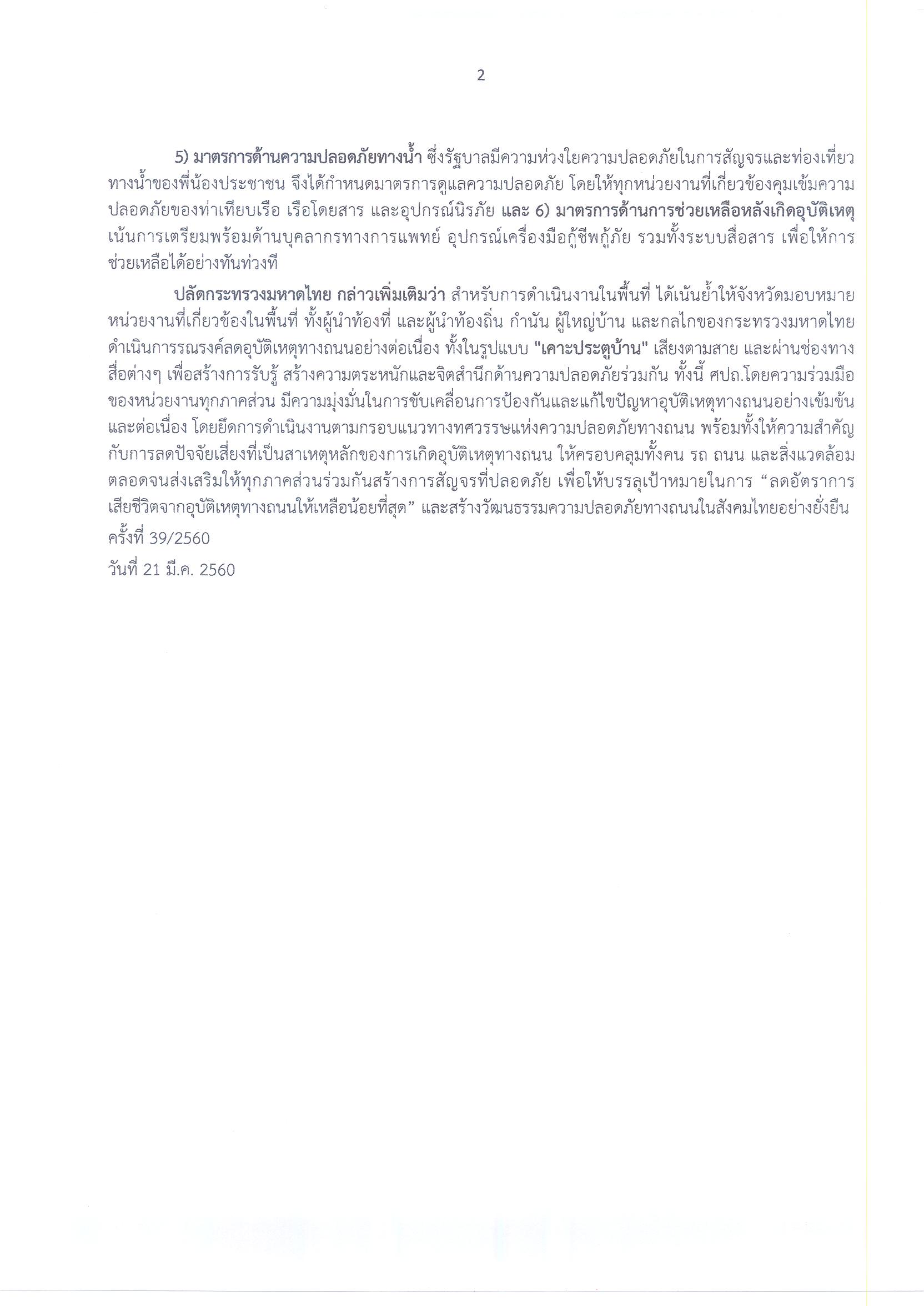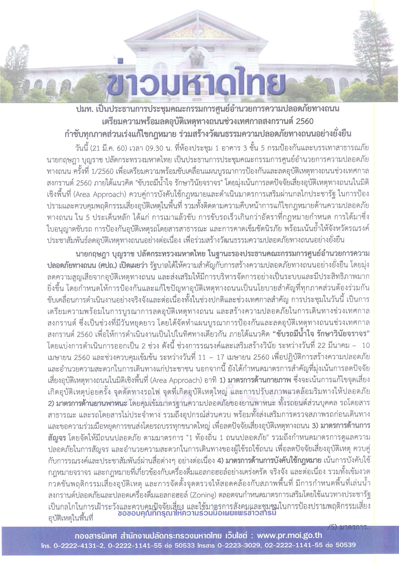 ข่าวมหาดไทย ปมท. เป็นประธานการประชุมคณะกรรมการศูนย์อำนวยการความปลอดภัยทางถนน เตรียมความพร้อมลดอุบัติเหตทางถนนช่วงเทศกาลสงกรานต์ 2560 กำชับทุกภาคส่วนเร่งแก้ไขกฎหมาย ร่วมสร้างวัฒนธรรมความปลอดภัยทางถนนอย่างยั่งยืน โดย กองสารนิเทศ สำนักงานปลัดกระทรวงมหาดไทย 10 กรกฎาคม 2019 10 กรกฎาคม 2019 5 ยอดวิว ก่อนหน้า รมช.มท. ประธานเปิดโครงการอบรมบุคลากรกรมที่ดิน “บริการดี ไม่มีทุจริต” ของสำนักงานที่ดินกรุงเทพมหานครและสาขา ประจำปี พ.ศ. 2560 ย้ำการทำงานกรมที่ดินยุคใหม่ต้องโปร่งใส – ไม่ให้เกิดข้อผิดพลาดในการทำงาน ถัดไป ปลัดกระทรวงมหาดไทย ติวเข้มเจ้าหน้าที่ศูนย์ดำรงธรรมทั่วประเทศ ย้ำบทบาทการทำงานปี 2560 ต้องเป็นหน่วยเติมเต็มการบริการประชาชนของทุกส่วนราชการ และแก้ไขปัญหาอย่างบูรณาการ ยึดประชาชนเป็นศูนย์กลางการทำงาน บทความที่เกี่ยวข้อง “มหาดไทย” ยกระดับเพิ่มประสิทธิภาพการตร... 15 ธันวาคม 2025 “รมช.มท.ก้อย-ศศิธร” แถลงข่าวมหกรรมของข... 15 ธันวาคม 2025 “อรรษิษฐ์ สัมพันธรัตน์” ปลัด มท. ประกา... 15 ธันวาคม 2025 สมเด็จพระกนิษฐาธิราชเจ้า กรมสมเด็จพระเทพรัตนราชสุด... 15 ธันวาคม 2025 มท.4 “ศศิธร” ลงพื้นที่ จ.เชียงใหม่ เปิ... 14 ธันวาคม 2025 “รมช.มท.ศักดิ์ดา” แถลง “ปิดกองบัญชาการ ปภ.ชาติ ส่ว... 14 ธันวาคม 2025 ผู้บัญชาการกองอาสารักษาดินแดน ขอบคุณและชื่นชมความเ... 13 ธันวาคม 2025 “รมช.มหาดไทย ศศิธร” เป็นประธานประชุมรัฐมนตรีอาเซีย... 13 ธันวาคม 2025 คกก.นโยบายลดอุบัติเหตุทางถนนแห่งชาติ เห็นชอบขับเคล... 12 ธันวาคม 2025