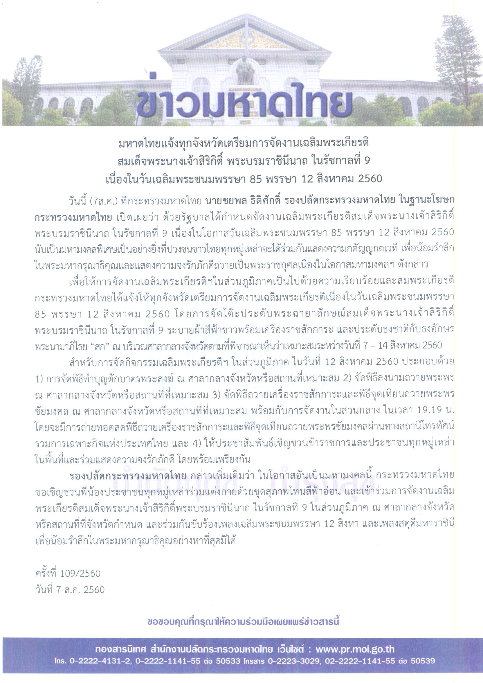 ข่าวมหาดไทย มหาดไทยแจ้งทุกจังหวัดเตรียมการจัดงานเฉลิมพระเกียรติสมเด็จพระนางเจ้าสิริกิติ์ พระบรมราชินีนาถ ในรัชกาลที่ 9 เนื่องในวันเฉลิมพระชนมพรรษา 85 พรรษา 12 สิงหาคม 2560 โดย กองสารนิเทศ สำนักงานปลัดกระทรวงมหาดไทย 7 สิงหาคม 2017 7 สิงหาคม 2017 8 ยอดวิว ก่อนหน้า กระทรวงมหาดไทย จับมือ MOU ภาคีเครือข่าย สร้าง “เยาวชนต้นแบบ” ภายใต้โครงการ พัฒนายุวมหาดไทย ยึดหลัก รู้ รัก สามัคคี และ ตอบแทนบุญคุณแผ่นดิน ถัดไป รองปลัดกระทรวงมหาดไทย หารือเครือข่าย เตรียมจัดทำสื่อส่งเสริมจริยธรรมข้าราชการ เพื่อเสริมสร้างจิตสำนึกด้านคุณธรรม จริยธรรม และแบบอย่างที่ดี แก่บุคลากรในสังกัด บทความที่เกี่ยวข้อง “อนุทิน” เปิดอาคาร “ที่ว่าการอำเภอบ้านลาด (หลังใหม... 21 ธันวาคม 2025 “มหาดไทย” ร่วมประชุมติดตามความพร้อมการ... 21 ธันวาคม 2025 “มหาดไทย” หารือทุกหน่วยเพิ่มประสิทธิภา... 19 ธันวาคม 2025 “สุราษฎร์ธานี เมืองคนดี ชีวิตดี มีความสุข... 19 ธันวาคม 2025 มหาดไทย ประชุมคณะกรรมการอำนวยการพัฒนาคุณภาพชีวิตขอ... 19 ธันวาคม 2025 รมช.มหาดไทย “ทรงศักดิ์” นั่งหัวโต๊ะ ประชุมคณะกรรมก... 19 ธันวาคม 2025 กระทรวงมหาดไทยร่วมกับมูลนิธิร่วมจิตต์น้อมเกล้าฯ เพ... 19 ธันวาคม 2025 รองปลัด มท. “สันติธร” ประชุมคณะกรรมการ... 19 ธันวาคม 2025 สมเด็จพระเจ้าลูกเธอ เจ้าฟ้าพัชรกิติยาภา นเรนทิราเท... 18 ธันวาคม 2025