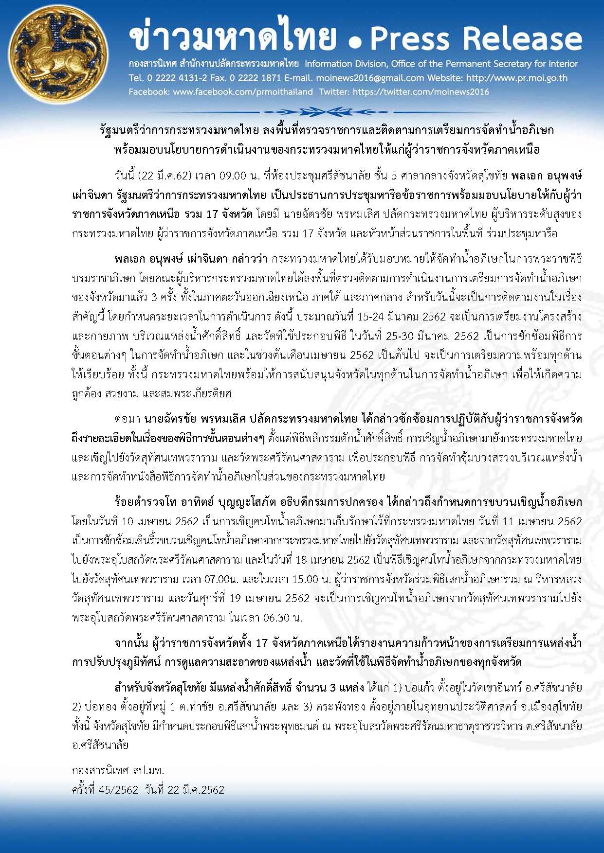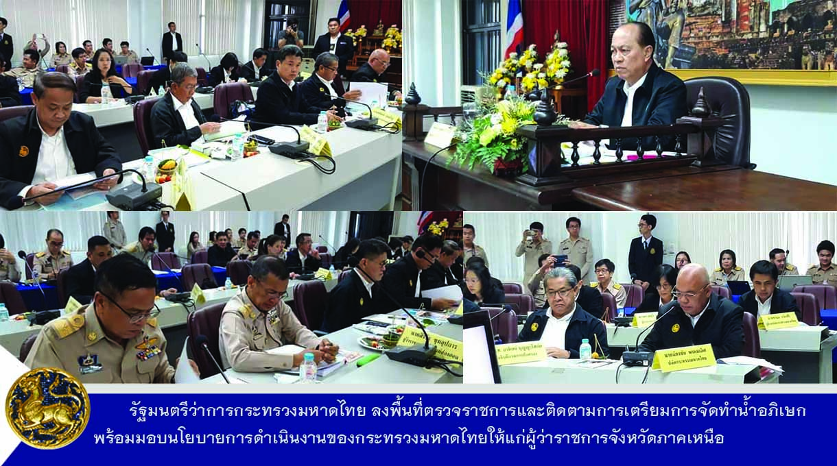 ข่าวมหาดไทย รัฐมนตรีว่าการกระทรวงมหาดไทย ลงพื้นที่ตรวจราชการและติดตามการเตรียมการจัดทำน้ำอภิเษก พร้อมมอบนโยบายการดำเนินงานของกระทรวงมหาดไทยให้แก่ผู้ว่าราชการจังหวัดภาคเหนือ โดย กองสารนิเทศ สำนักงานปลัดกระทรวงมหาดไทย 22 มีนาคม 2019 22 มีนาคม 2019 12 ยอดวิว ก่อนหน้า กระทรวงมหาดไทย บรรยายเรื่อง “แหล่งน้ำศักดิ์สิทธิ์และพิธีทำน้ำอภิเษก” ในการอบรมเชิงปฏิบัติการงานพระราชพิธีบรมราชาภิเษก พุทธศักราช 2562 ครั้งที่ 2 ถัดไป มท. เดินหน้าขับเคลื่อนภารกิจด้านอาเซียน จัดนิทรรศการเสริมสร้างองค์ความรู้แก่บุคลากร “การเป็นประธานอาเซียนของไทย ปี 2562 และ บทบาทกระทรวงมหาดไทยภายใต้กรอบความร่วมมือ AC” บทความที่เกี่ยวข้อง “ปลัดมหาดไทย” เผย กรมบัญชีกลางอนุมัติข... 8 ธันวาคม 2025 “นายกฯ อนุทิน” ประชุมติดตามสถานการณ์ชา... 8 ธันวาคม 2025 รมช.มหาดไทย “ศักดิ์ดา” ประชุมติดตามสถา... 8 ธันวาคม 2025 “ศักดิ์ดา” รมช.มหาดไทย ติดตามสถานการณ์... 8 ธันวาคม 2025 ไทยเดินหน้าความพร้อมเป็นเจ้าภาพประชุมรัฐมนตรีอาเซี... 8 ธันวาคม 2025 ประเทศไทยพร้อมเป็นเจ้าภาพการประชุมรัฐมนตรีอาเซียนด... 8 ธันวาคม 2025 📌มท.ศักดิ์ดา นั่งหัวโต๊ะกองบัญชาการป้องกัน... 7 ธันวาคม 2025 “นายกฯ อนุทิน” นำคณะ มอบถุงยังชีพและให... 6 ธันวาคม 2025 “นายกฯ อนุทิน” นำคณะลงพื้นที่ติดตามบรร... 6 ธันวาคม 2025